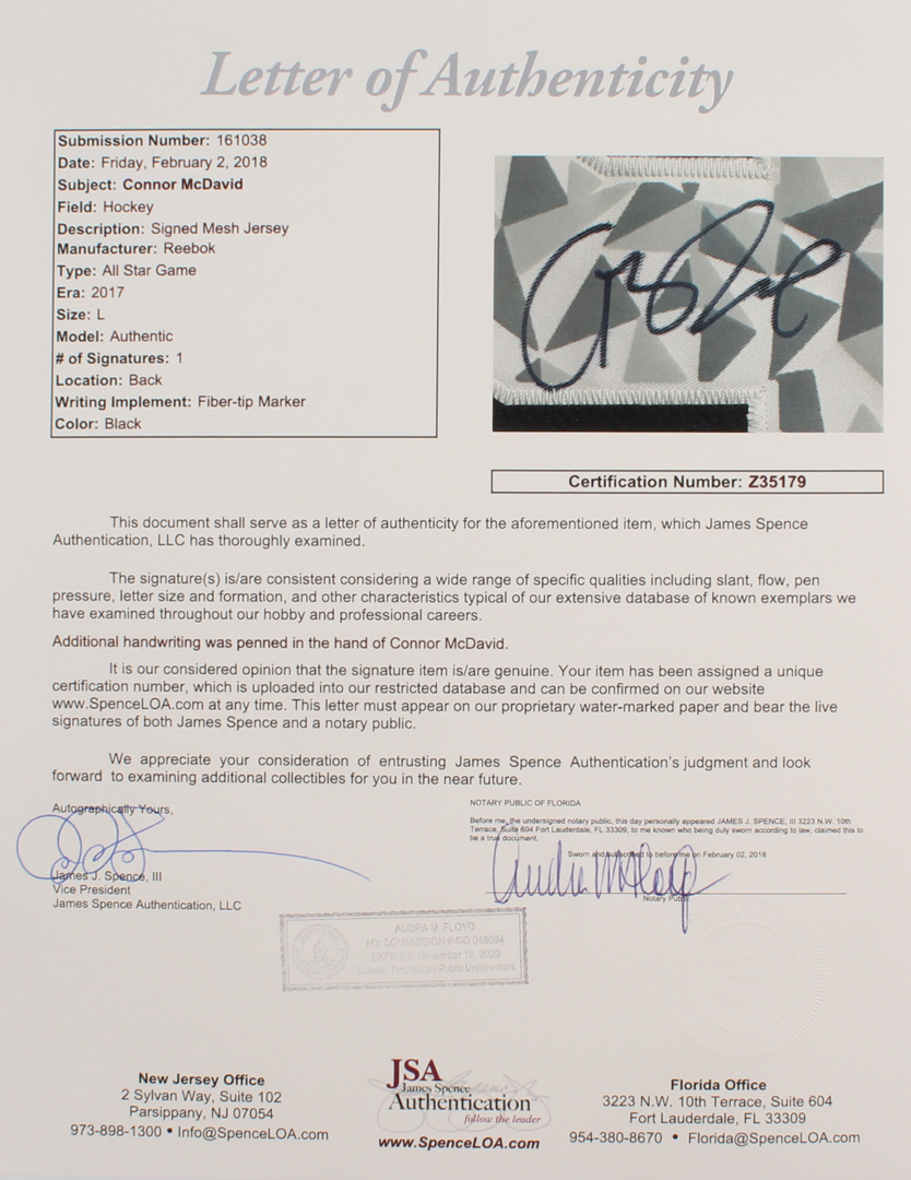 Connor McDavid Signed 2017 NHL All-Star Captains Jersey (JSA LOA)