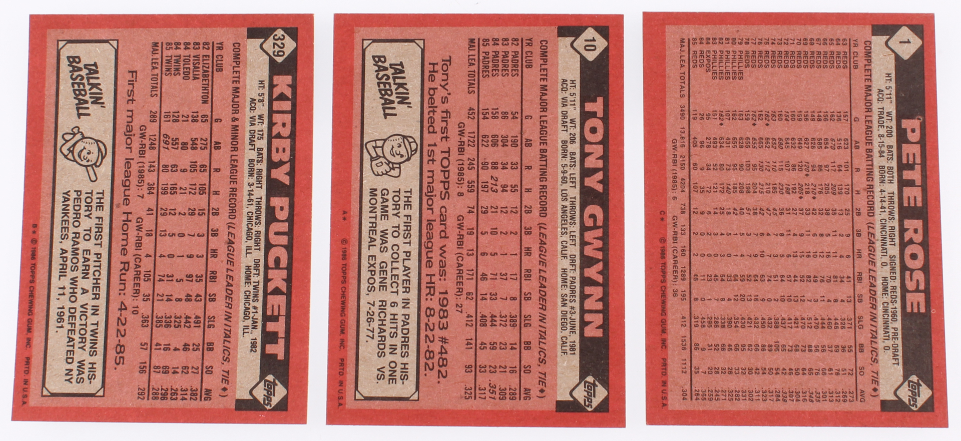 1986 Topps Complete Set of (792) Baseball Cards with #1 Pete Rose, #10 Tony Gwynn, #329 Kirby Puckett