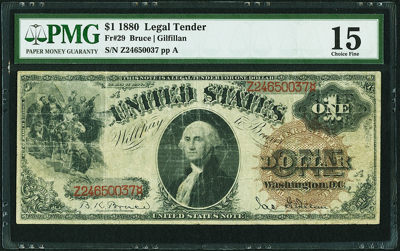 1880 $1 One Dollar Legal Tender Large Bank Note (PMG 15)