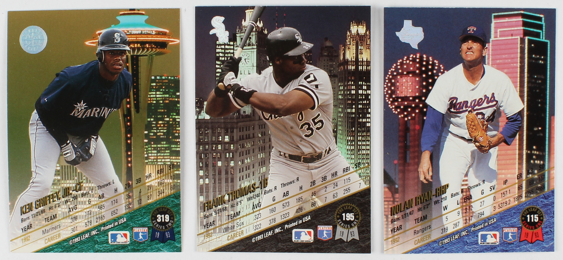 1993 Leaf Complete Set of (550) Baseball Cards with #319 Ken Griffey Jr., #195 Frank Thomas, & #115 Nolan Ryan