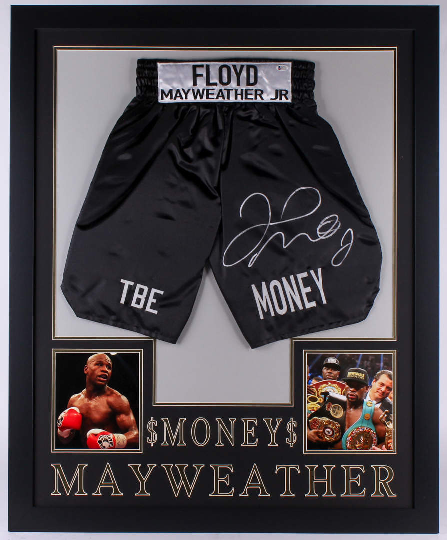 Floyd Mayweather Jr. Signed 35x43 Custom Framed Boxing Trunks Display (Beckett COA)