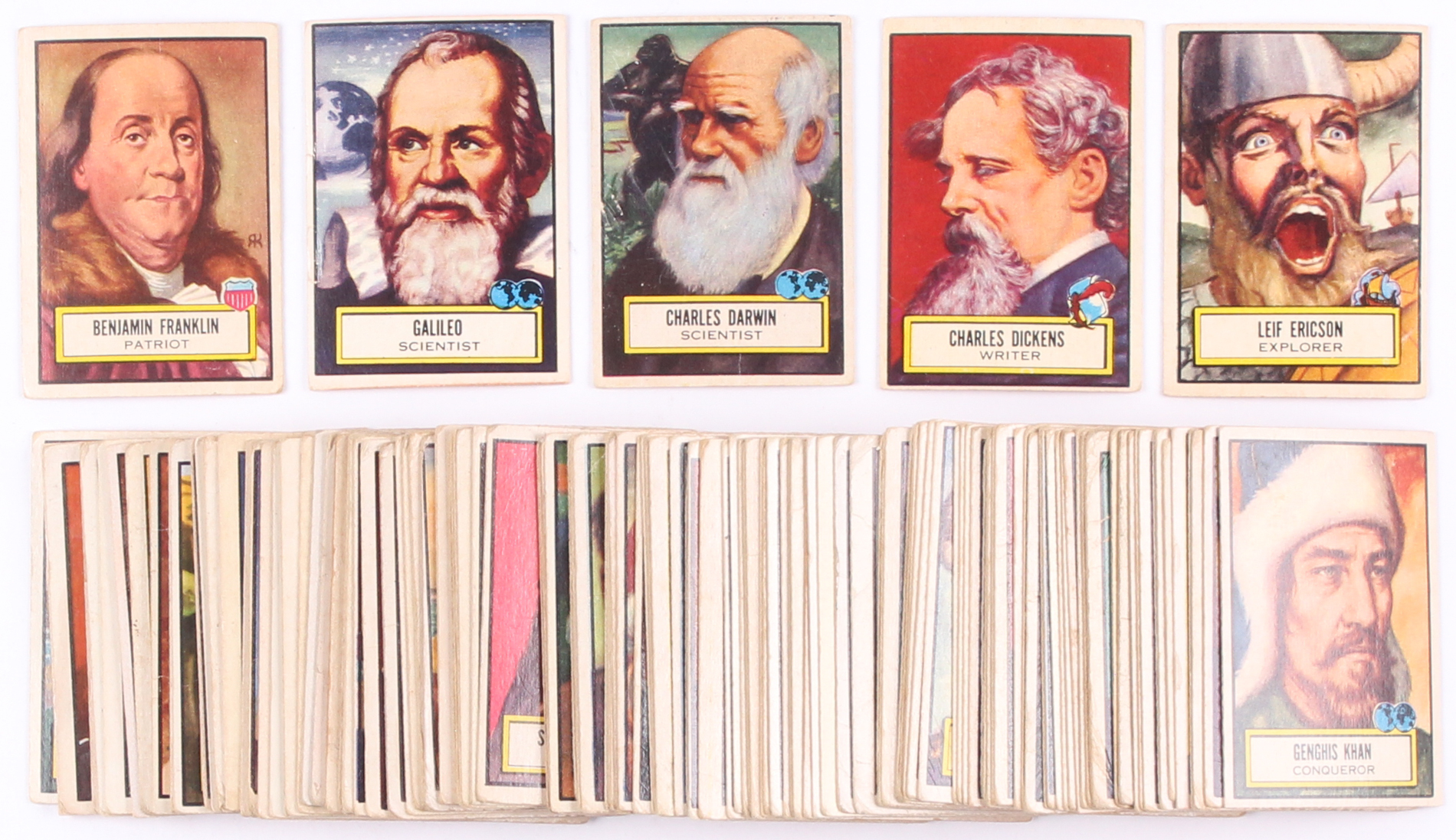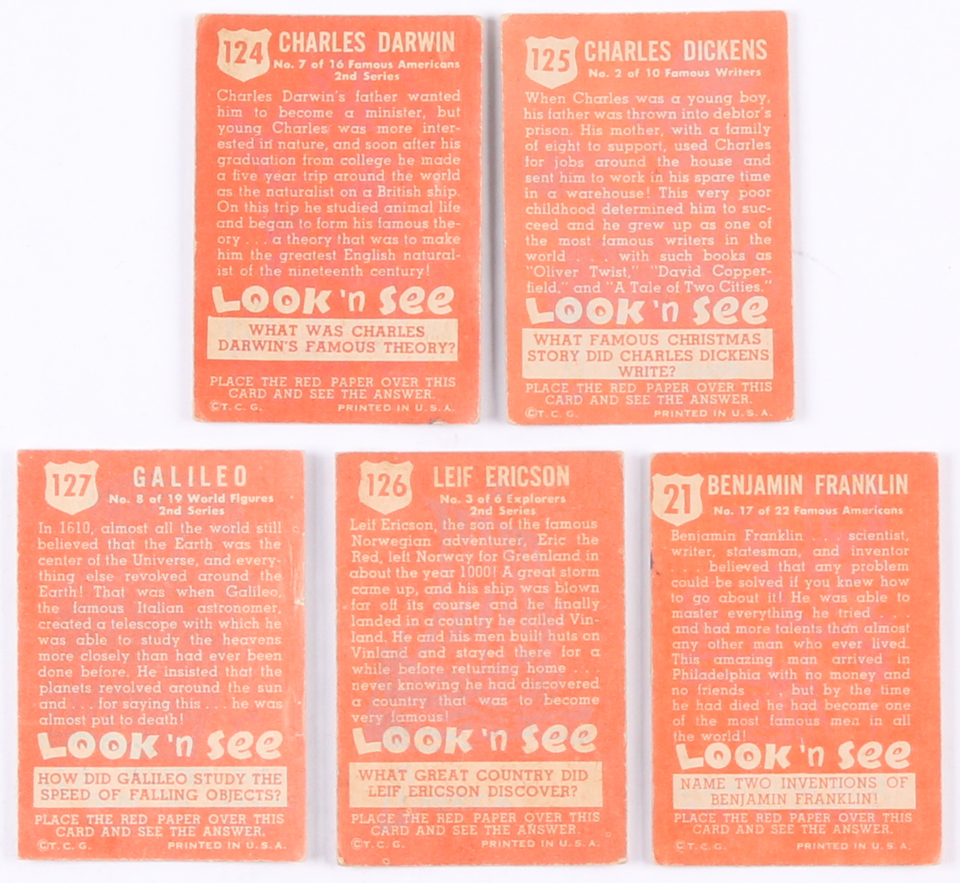 1952 Look N' See Complete Set of (135) Baseball Cards with #124 Charles Darwin, #125 Charles Dickens, #127 Galileo, #126 Leif Ericson, #21 Benjamin Franklin