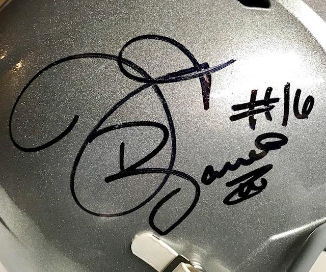 The autograph includes an official James Spence Authentication (JSA) hologram and matching COA as well as an official J. T. Barrett player hologram for authenticity purposes. The signing of this item was witnessed by JSA.