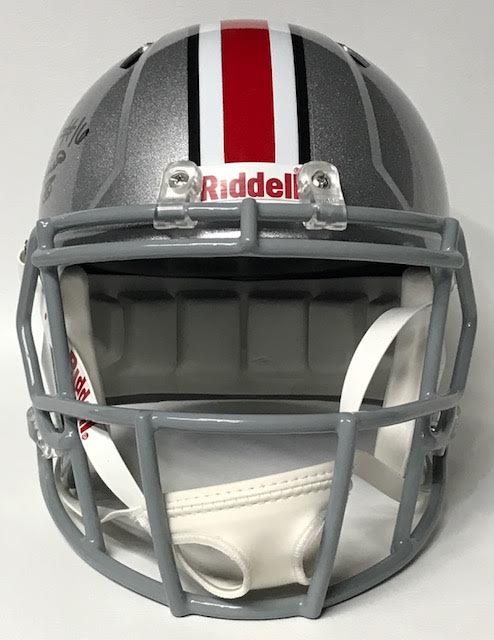 Riddell Buckeyes full-size replica speed helmet. Hand-signed in black felt-tip pen by J. T. Barrett.