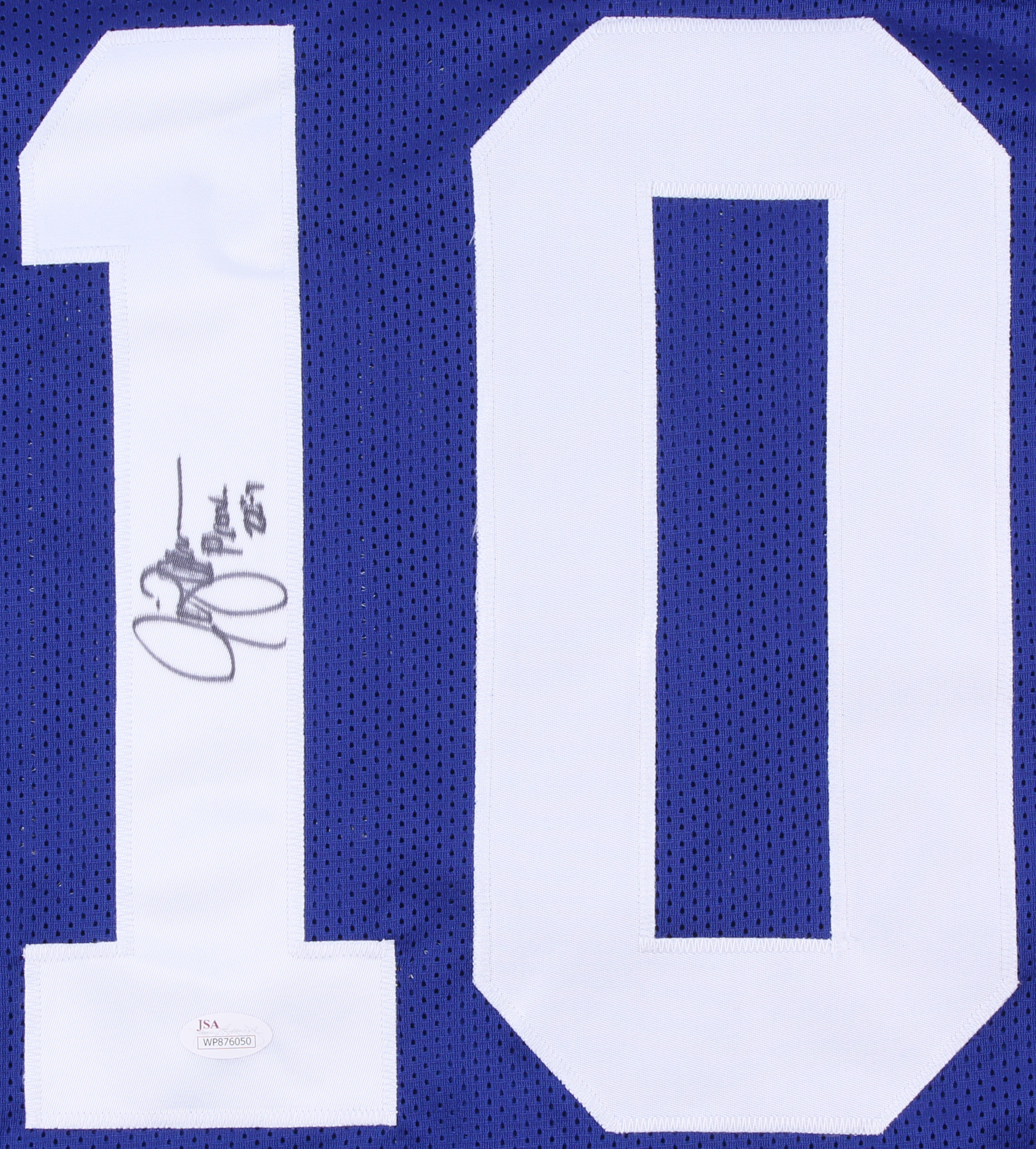 Custom on-field style jersey. Everything sewn on, size XL. Hand-signed in black felt-tip pen by Jim Zorn.