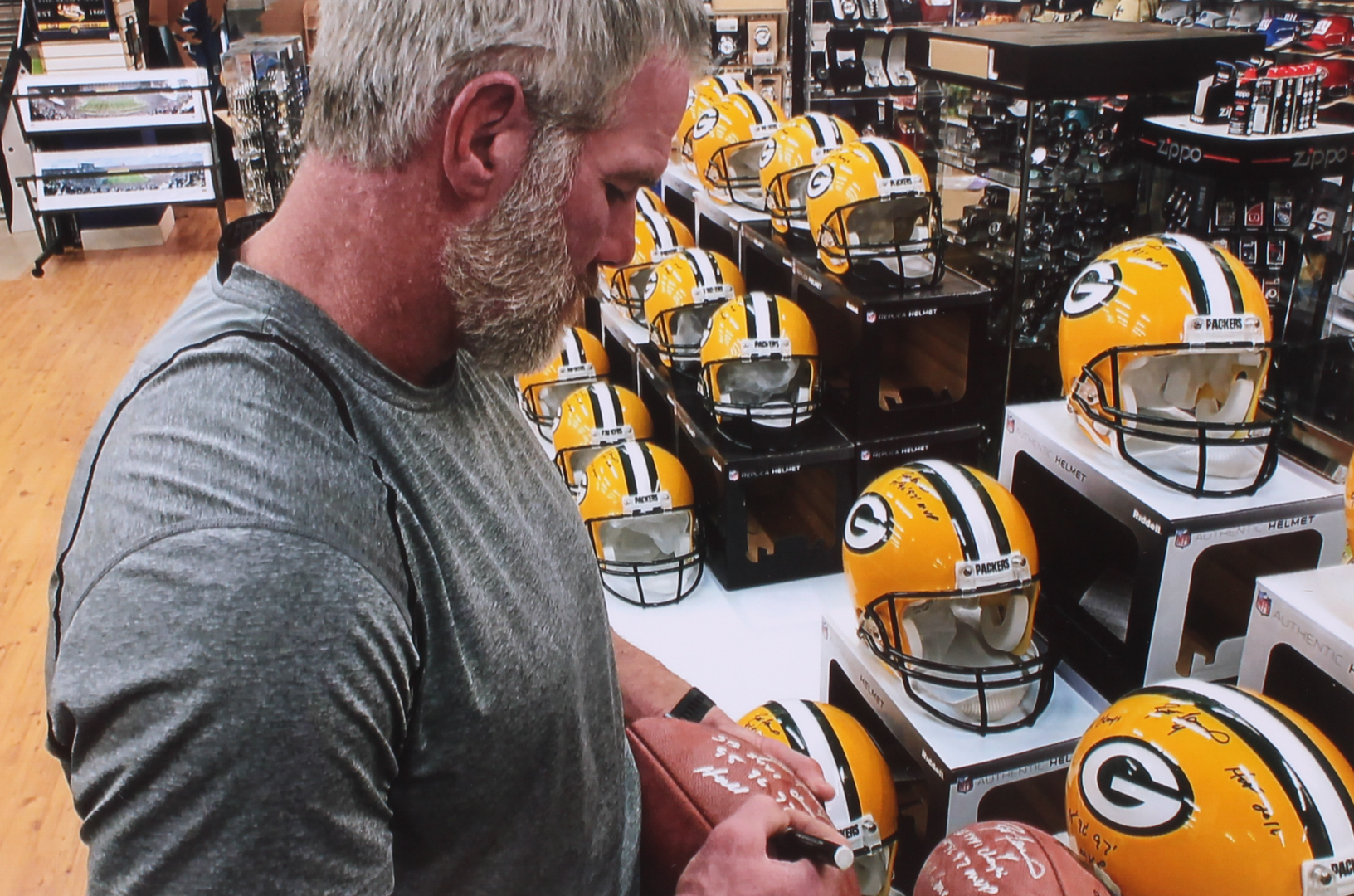 Wilson Official Super Bowl 31 Logo football has been hand-signed and inscribed in silver paint pen by Brett Favre.