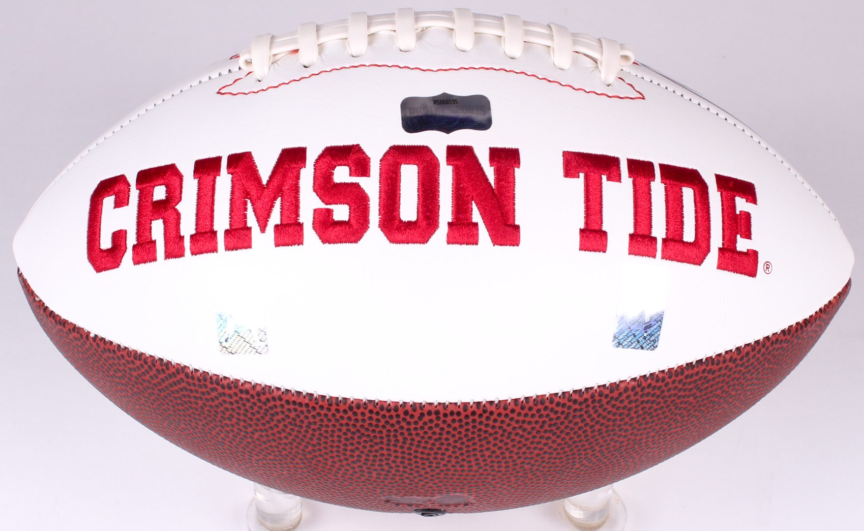 University of Alabama Crimson Tide logo football. Hand-signed and inscribed in black felt-tip pen by Derrick Henry (Titans) and Mark Ingram (Saints).