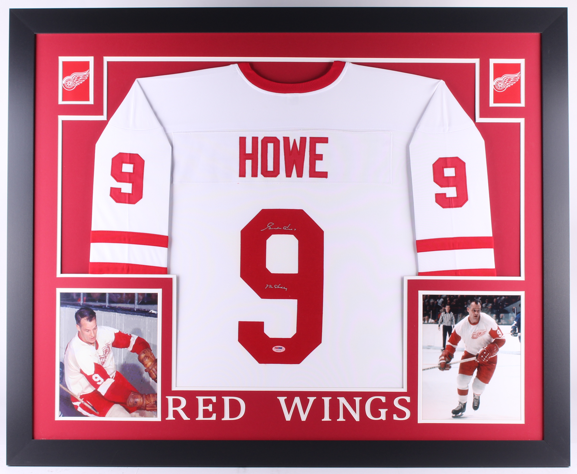 Gordie Howe Signed Red Wings 35x43 Custom Framed Jersey Inscribed "Mr. Hockey" (PSA COA)