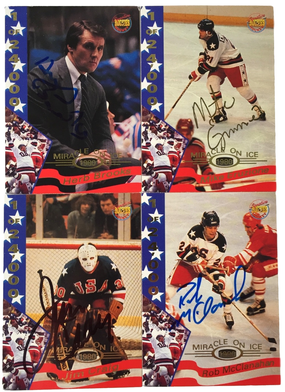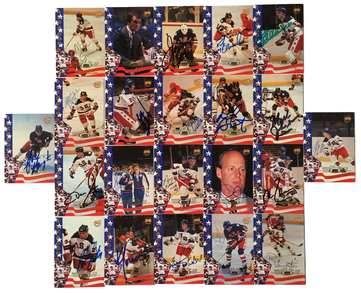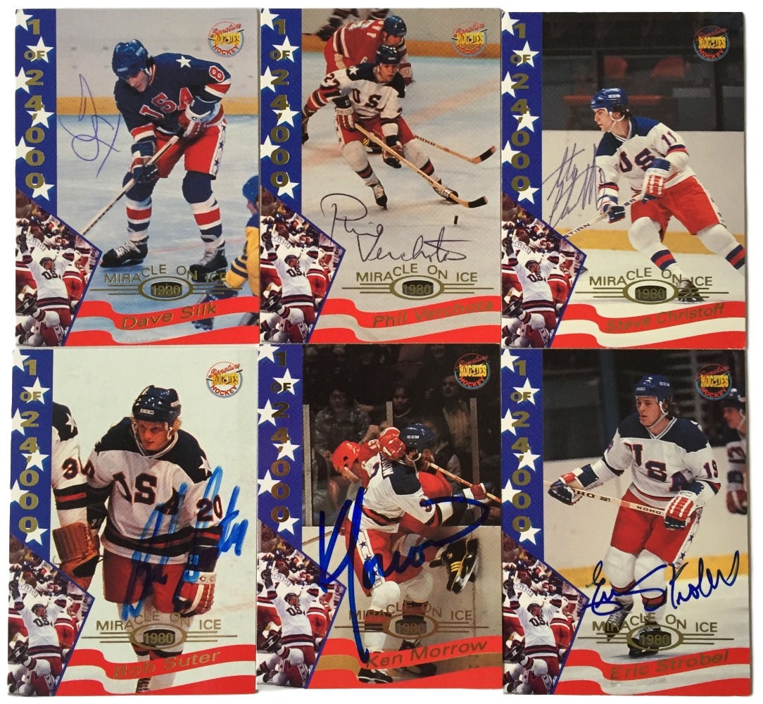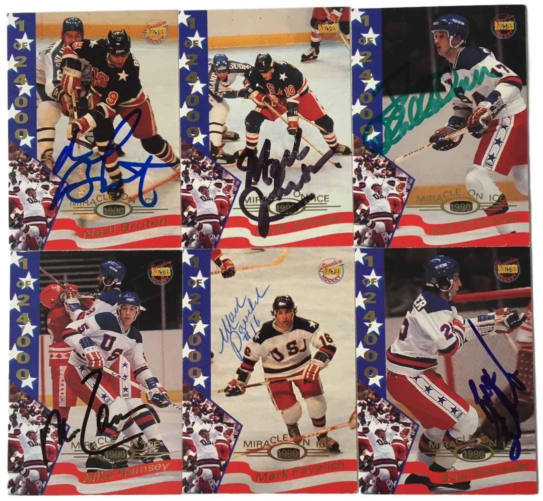 Lot includes all (22) cards shown. Each card has been hand-signed by (1) team member of the 1980 Miracle on Ice team including Herb Brooks, Mike Eruzione, Jim Craig, Mark Pavelich, Dave Christian, Dave Silk, Steve Christoff, Neal Broten, Steve Janasak, Mark Johnson, Phil Verchota, Craig Patrick, Rob McClanahan, Mike Ramsey, John Harrington, Buzz Schneider, Bob Suter, Marc Wells, Bill Baker, Jack O'Callahan, Eric Strobel, and Ken Morrow.