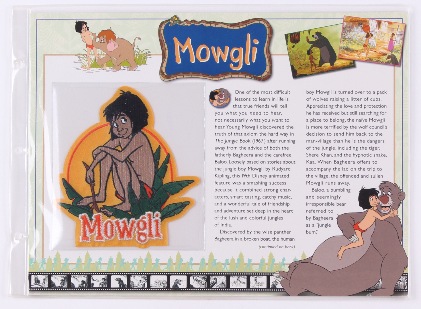 Disney's "The Jungle Book" Mowgli patch and card measures 9" x 12" in size.