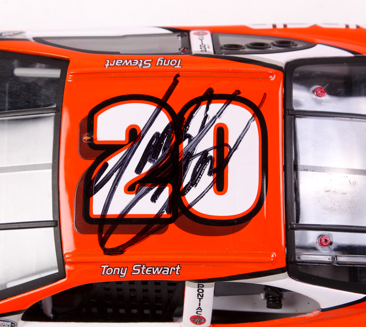 Action #20 LE 2000 Pontiac NASCAR 1:18-Scale Stock Car. Hand-signed in black felt-tip pen by Tony Stewart. Limited Edition #/3504. Please note, rear driver-side window is damaged.