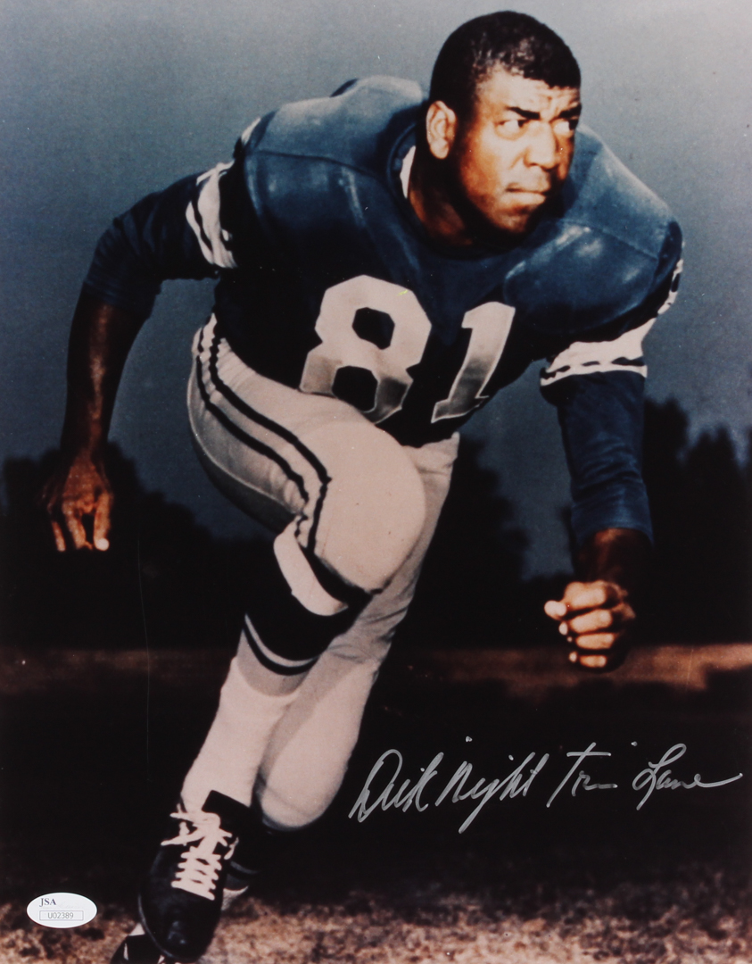 Photo measures 11" x 14" in size and has been hand-signed in silver paint pen by Dick “Night Train" Lane. (HOF, D. 2002)