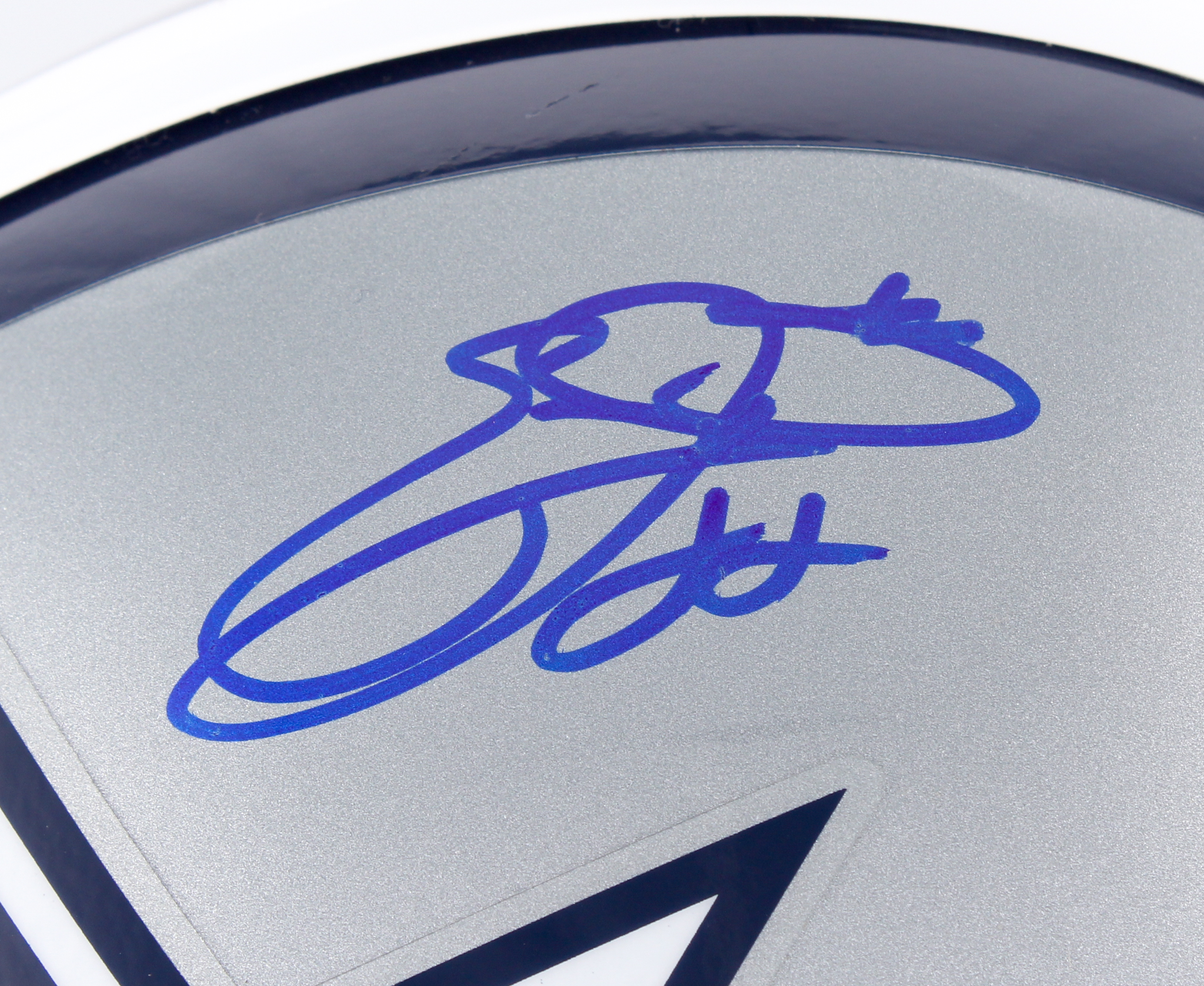 Dallas Cowboys Full-Size replica Helmet has been hand-signed in blue felt tip pen by Emmitt Smith (HOF).