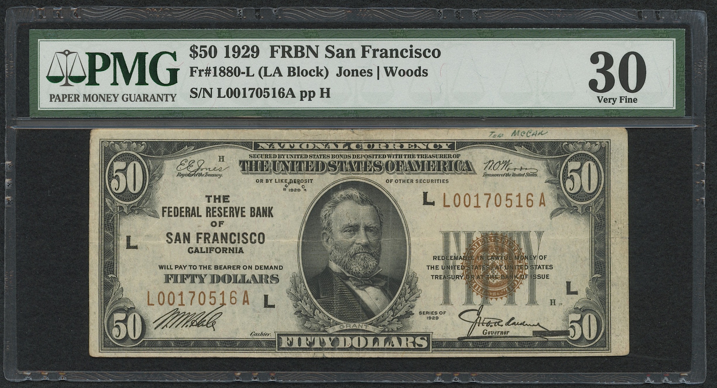 1929 $50 Fifty Dollars U.S. National Currency Bank Note - The Federal Reserve Bank of San Francisco (PMG 30)