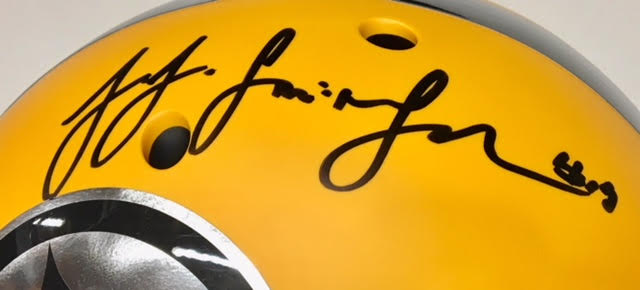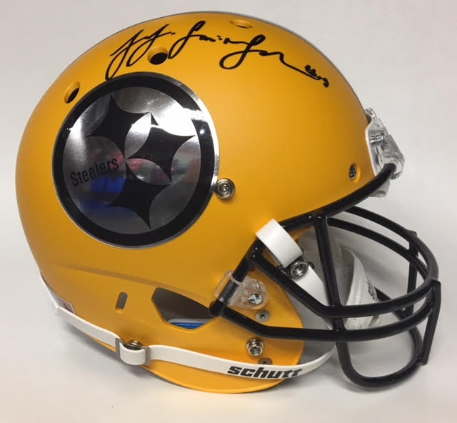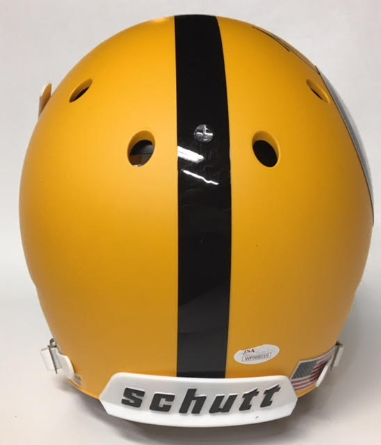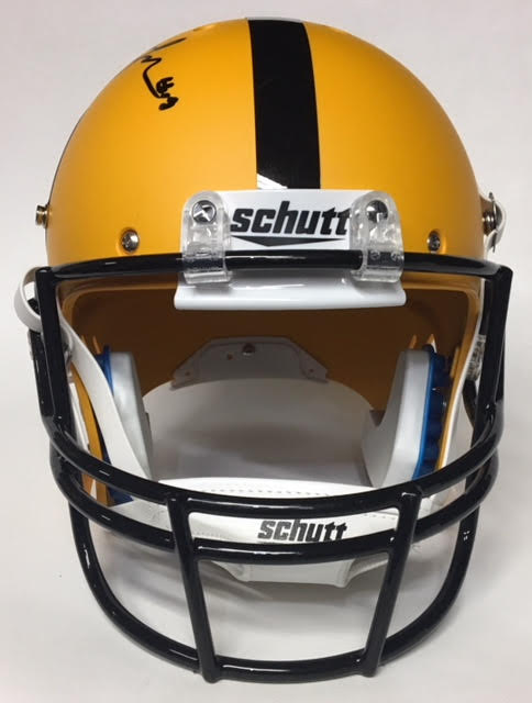 Schutt Steelers full-size matte yellow replica helmet, the helmet has been hand-signed in black felt-tip pen by JuJu Smith-Schuster.