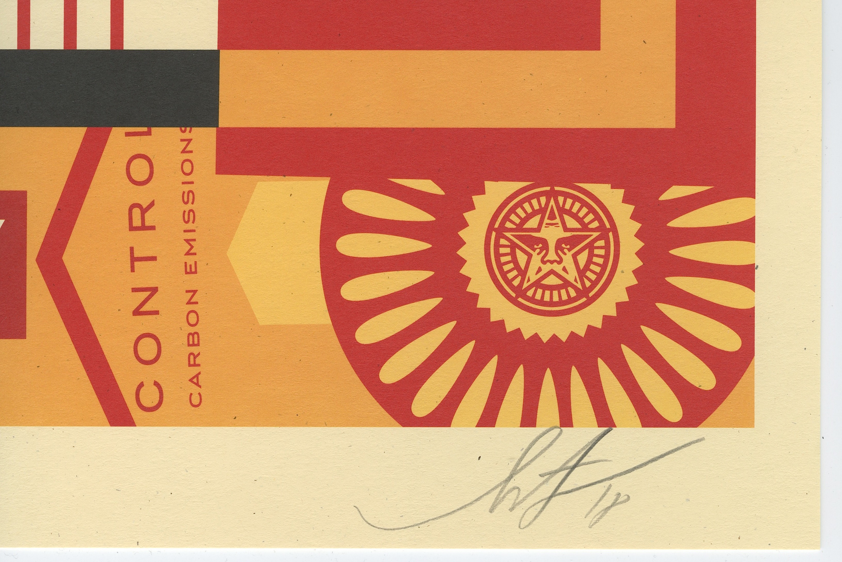 This piece measures approximately 18" x 24" in size and is hand-signed by renowned street artist, Shepard Fairey.
