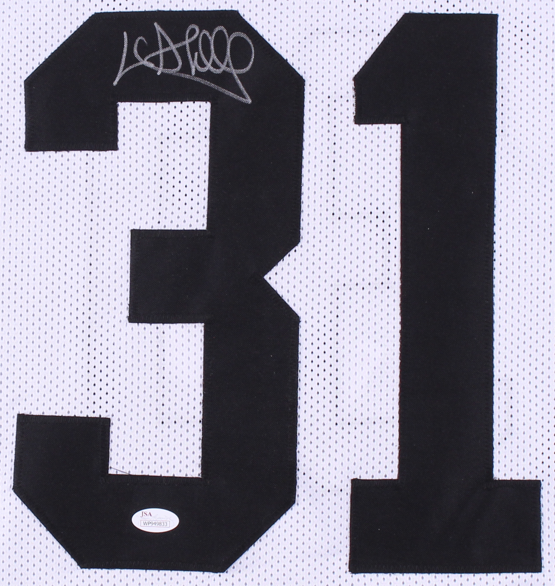 Custom on-field style jersey. Everything is sewn on, size XL. Hand-signed in silver paint pen by Donnie Shell.