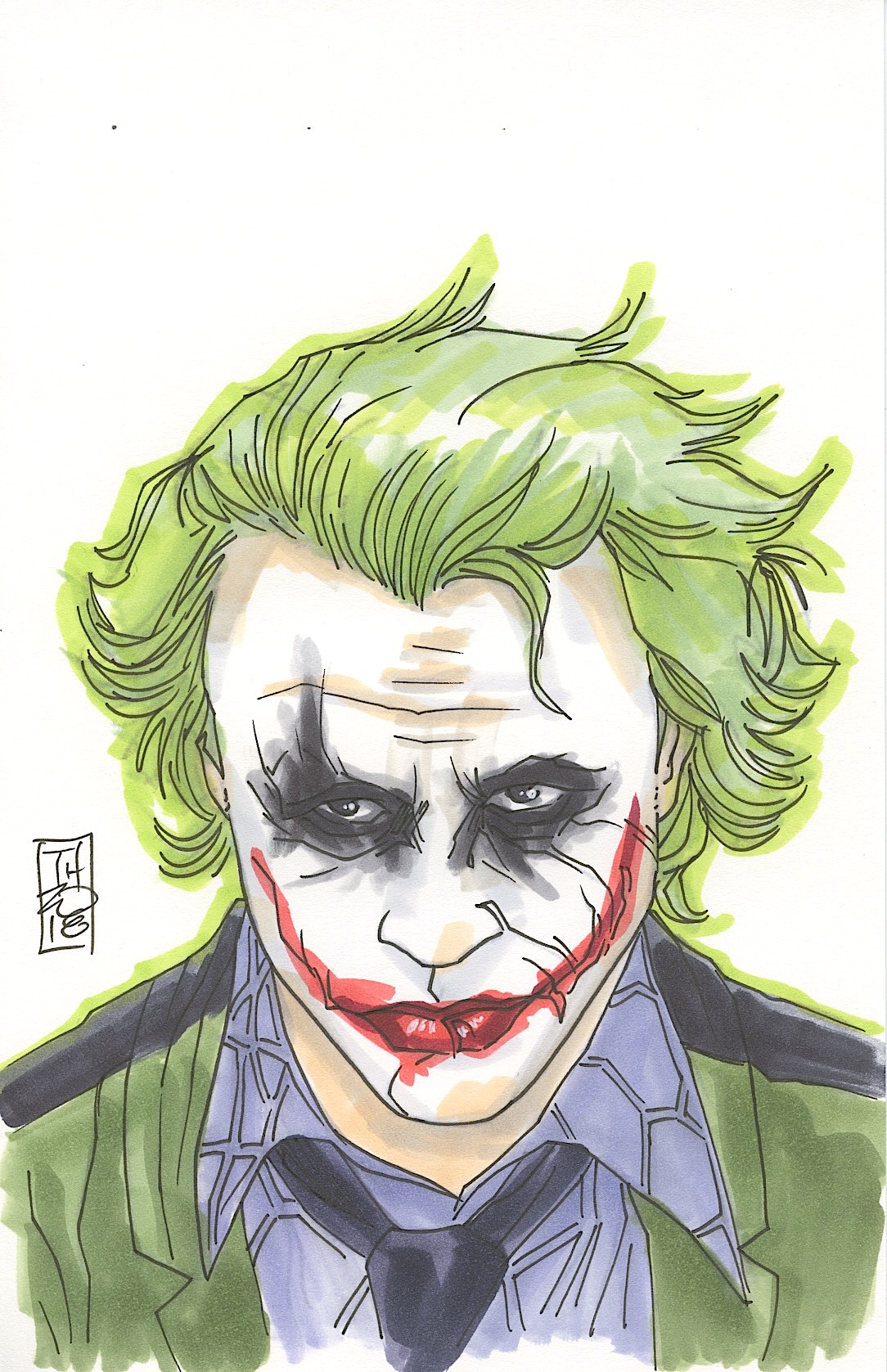 Tom Hodges - The Joker (Heath Ledger) Batman Signed ORIGINAL 5.5" x 8.5" Color Drawing on Paper (1/1)