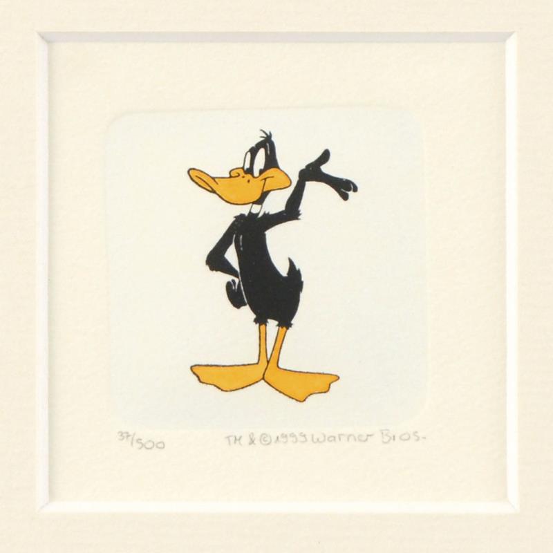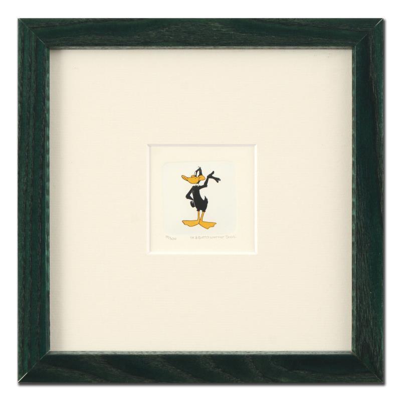 "Daffy Duck" is a limited edition etching on paper with hand-tinted coloring from Warner Bros, numbered and dated 1999. This piece comes framed. Measures approx. 8.5" x 8.5" (with frame), 1" x 1.5" (image).