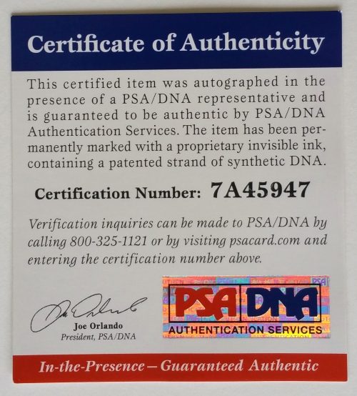 The lot / autograph(s) includes an official PSA/DNA hologram and matching COA for authenticity purposes. The signing of this item was witnessed by PSA.