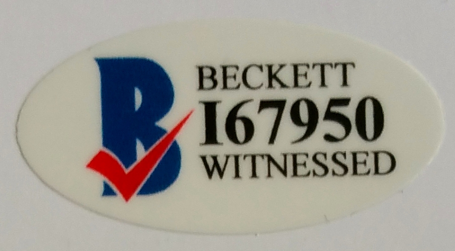The lot / autograph(s) includes an official Beckett Authentication Services serially numbered hologram and matching COA for authenticity purposes. The signing of this item was witnessed by Beckett