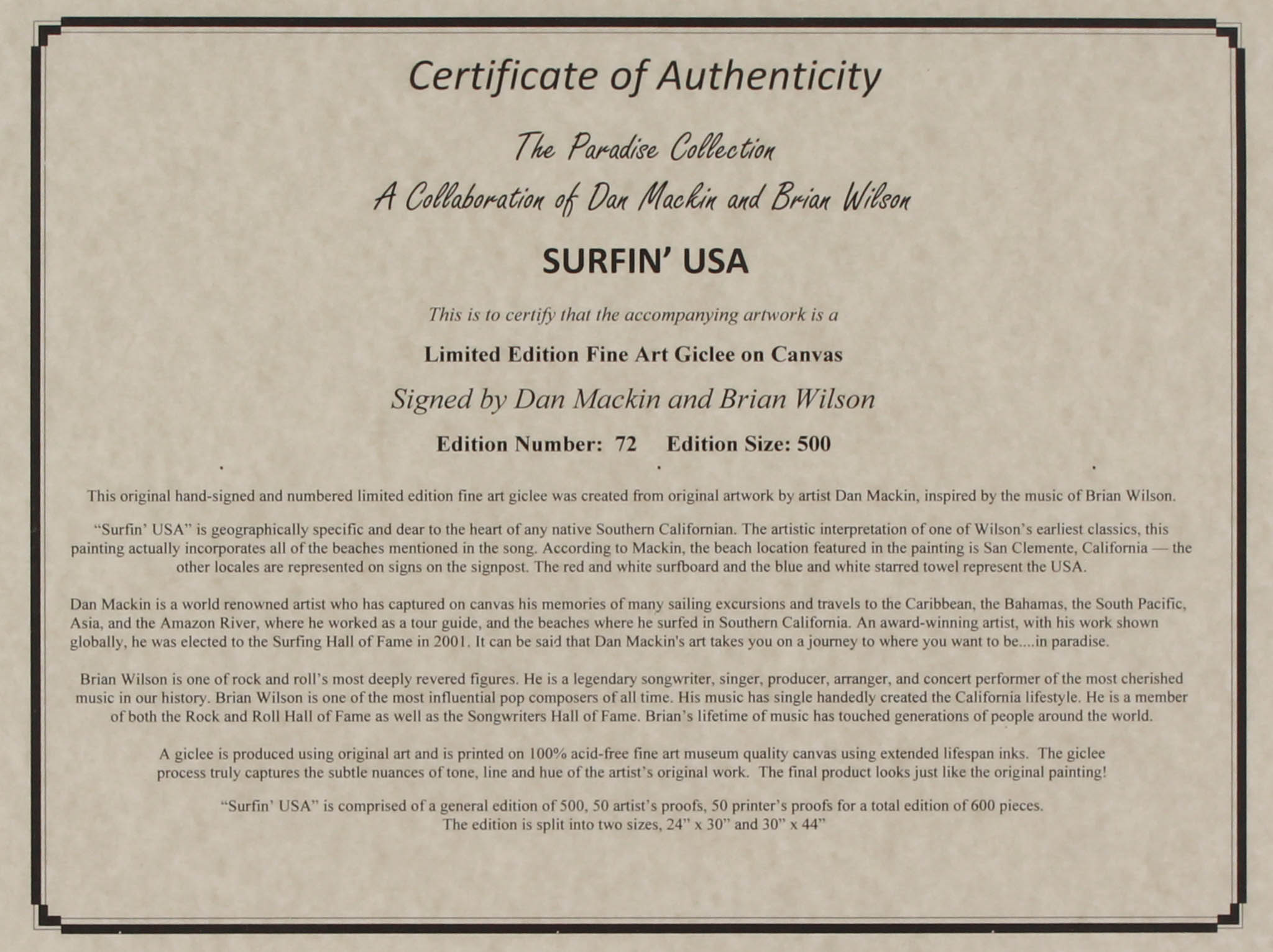 Dan Mackin – “The Beach Boys” Brian Wilson "Surfin' USA" Signed Limited Edition 34" x 48" Fine Art Giclee on Canvas #72/500 (PA LOA)