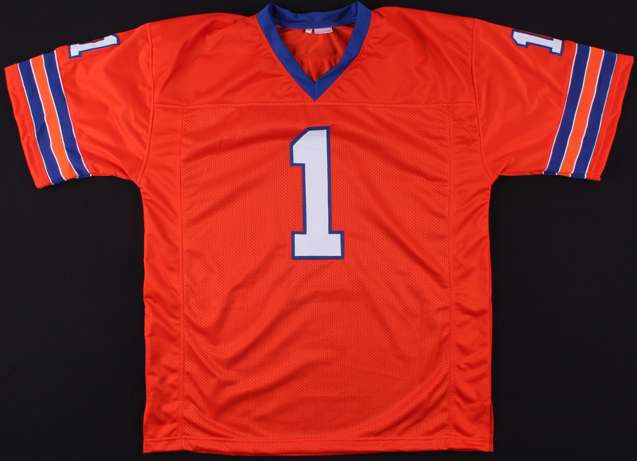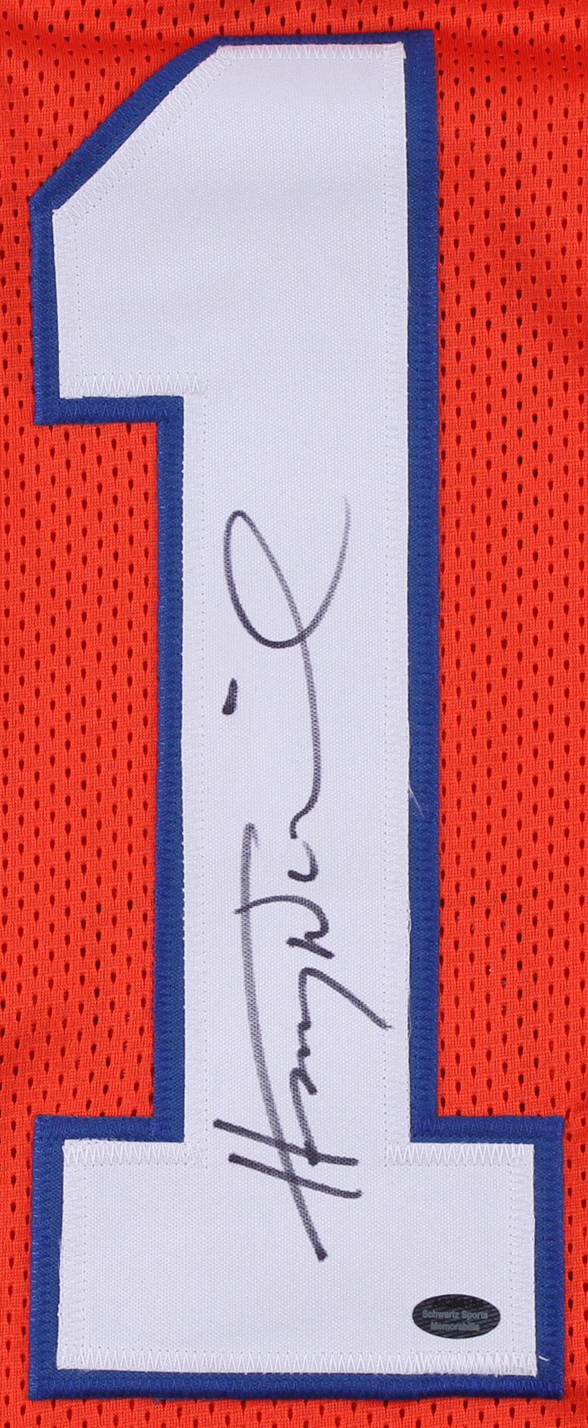 Custom on-field style orange football jersey with everything sewn on, size XL. Jersey has been hand-signed in black felt-tip pen by Henry Winkler.