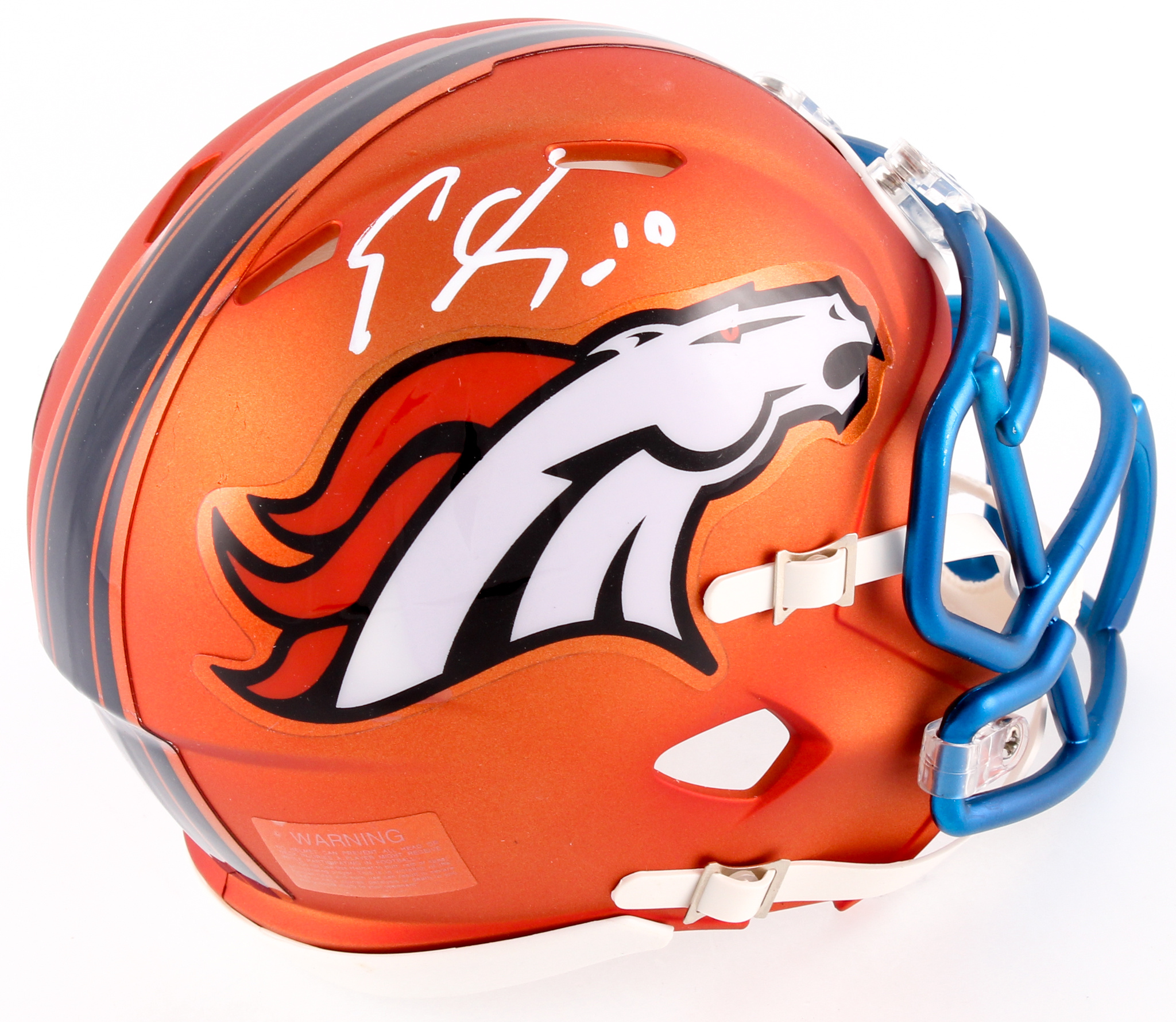 Denver Broncos Blaze mini speed helmet has been hand-signed in white paint pen by Emmanuel Sanders.