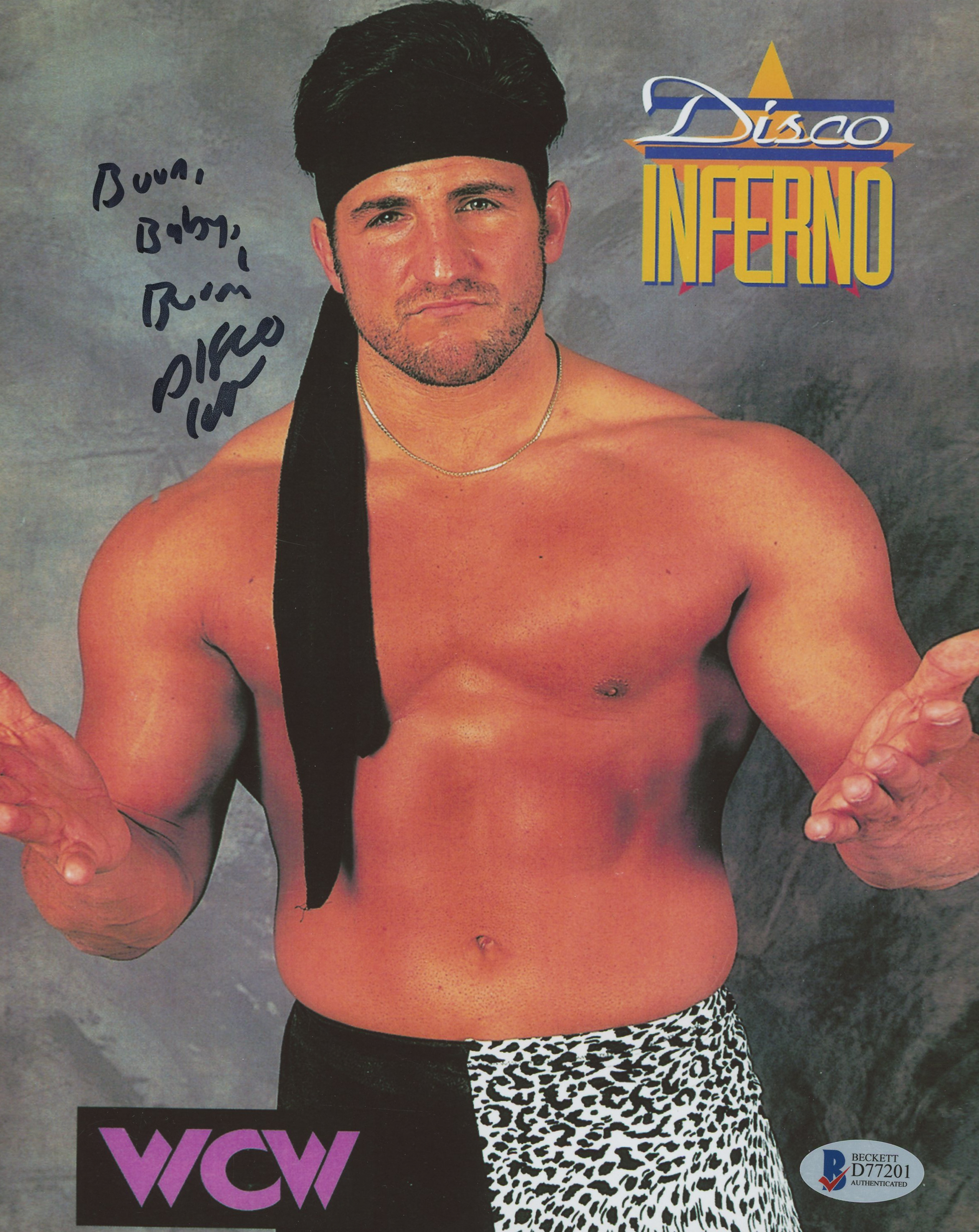 Disco Inferno Signed WCW 8x10 Photo Inscribed "Burn, Baby, Burn!" (Beckett COA)