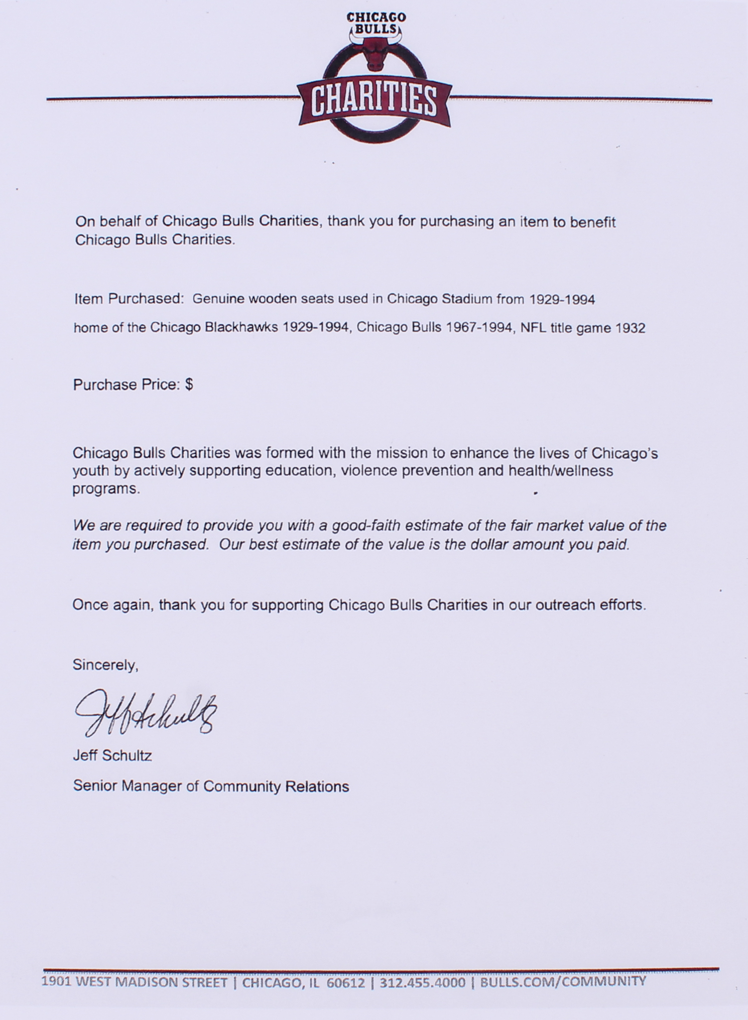 The lot includes a LOA from Chicago Bulls Charities.