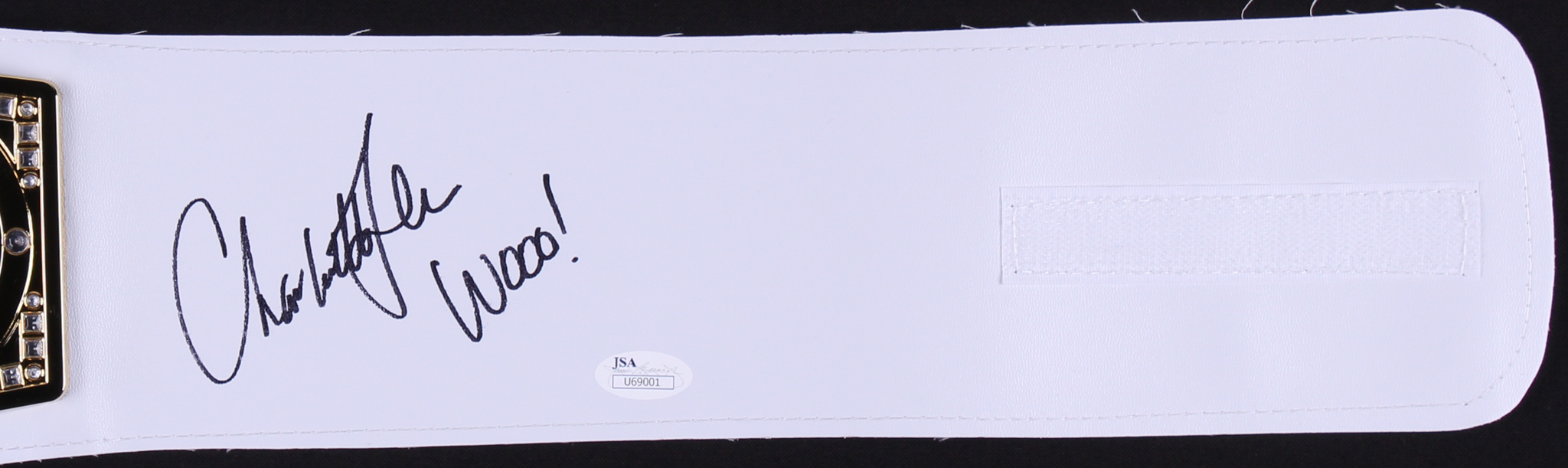 Replica WWE Championship Belt (plastic) measures 38" in size and is hand-signed in black felt-tip pen by Charlotte Flair.