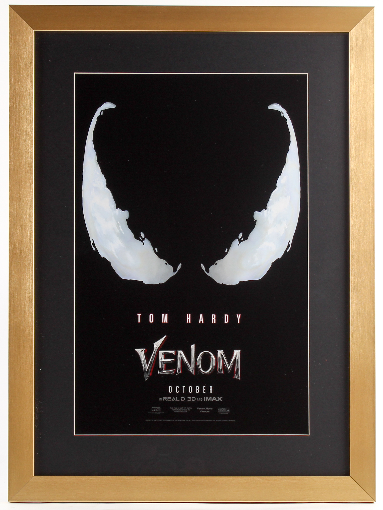 Custom framed movie poster measures approximately 17" x 23" in size and features a movie poster of Venom.