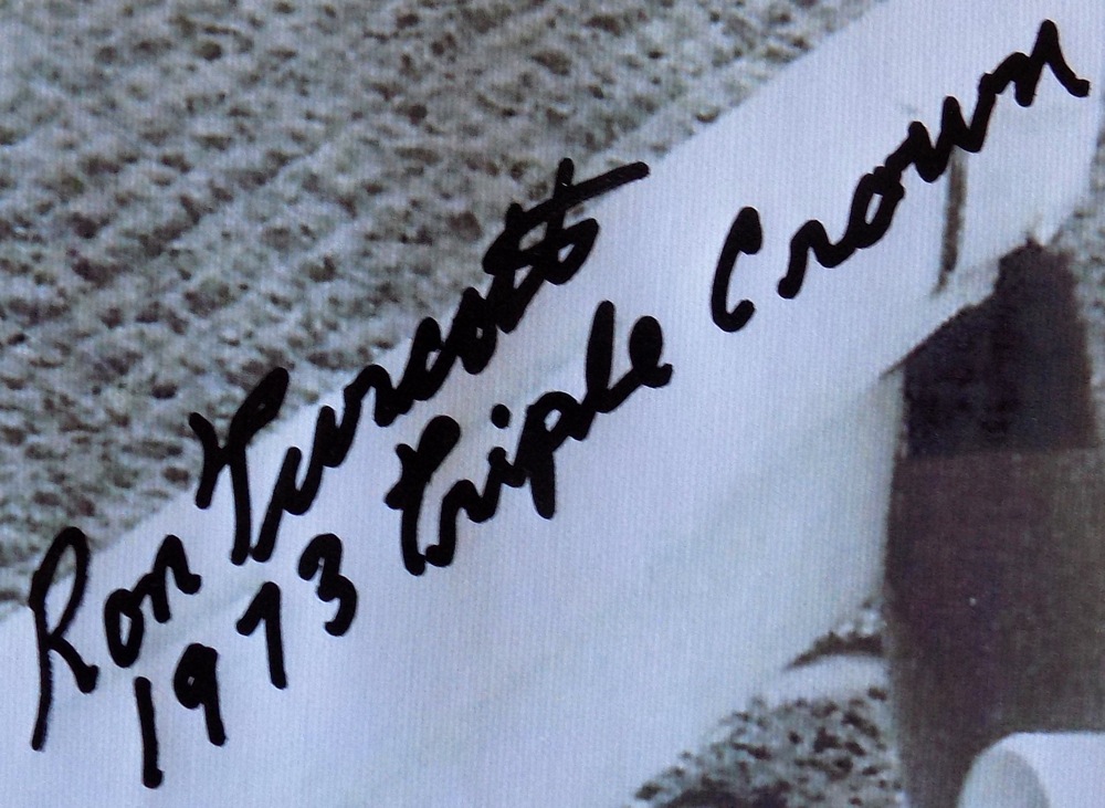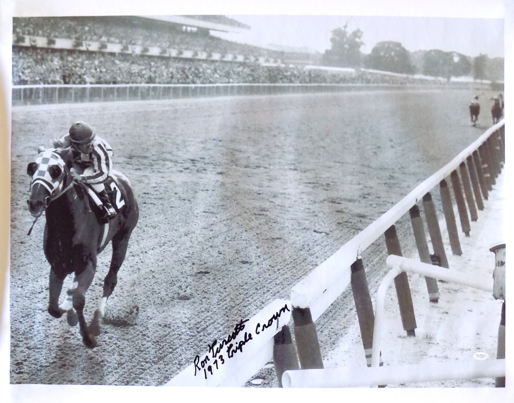 Ron Turcotte Signed Belmont Stakes 24" x 35" Canvas Inscribed "1973 Triple Crown" (JSA)