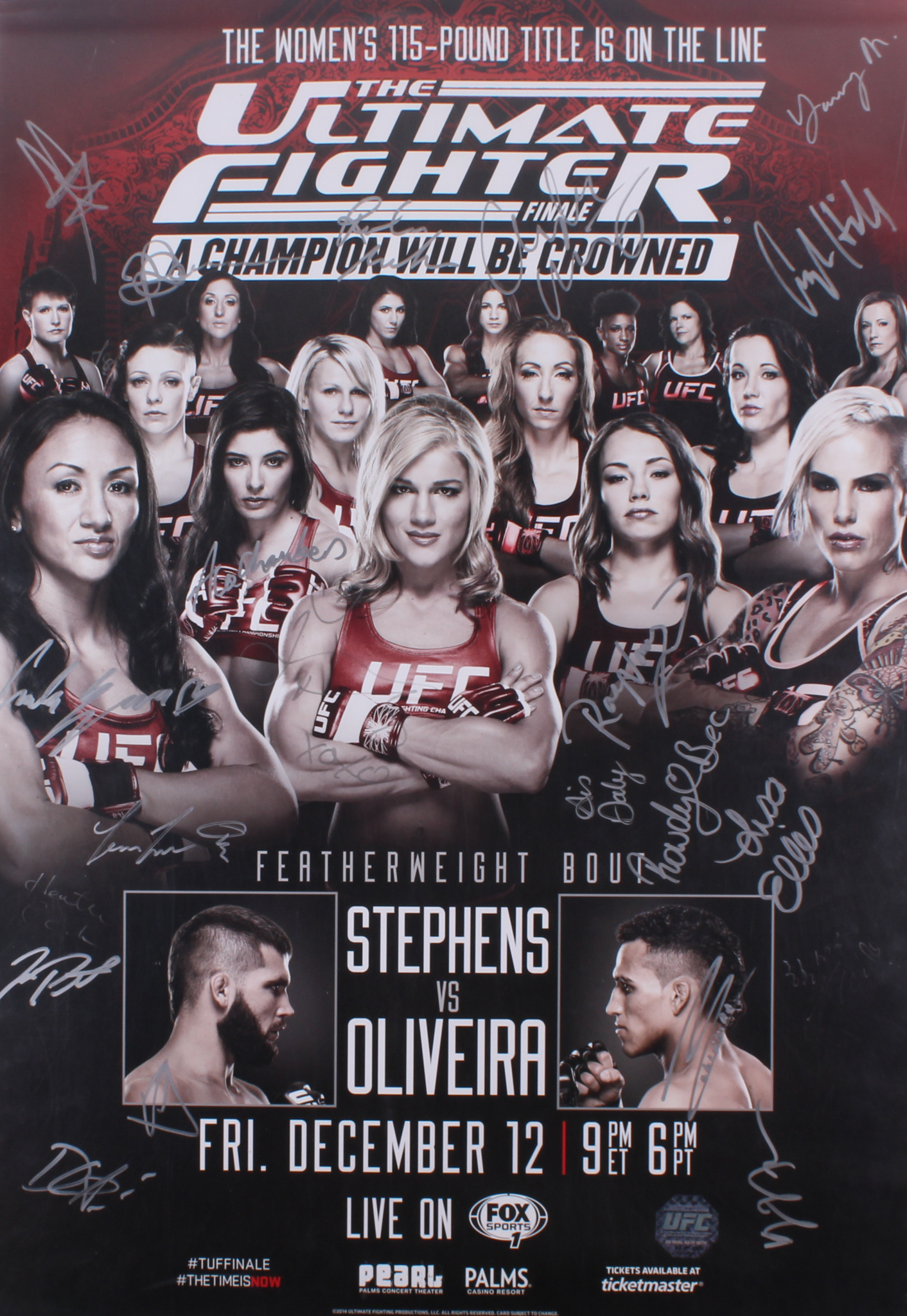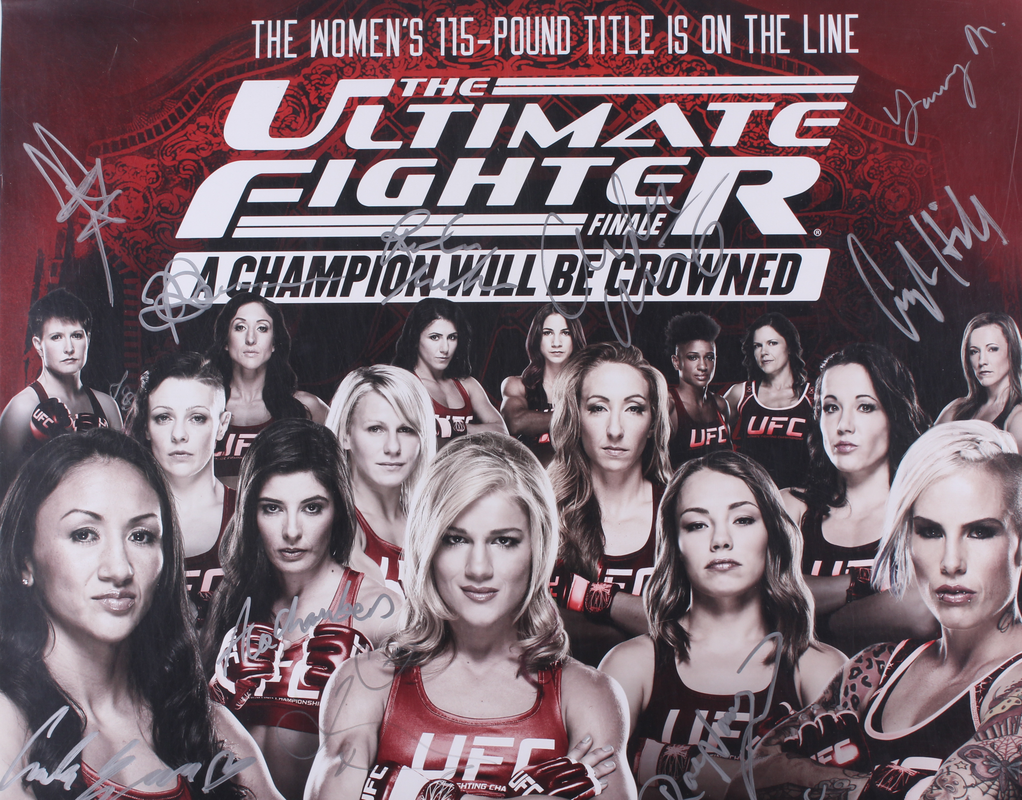 UFC Ultimate Fighter 27x 38 Poster Signed by (21) with Carla Esparza, Rose Namajunas, Lisa Ellis, Jeremy Stephens (UFC Hologram)