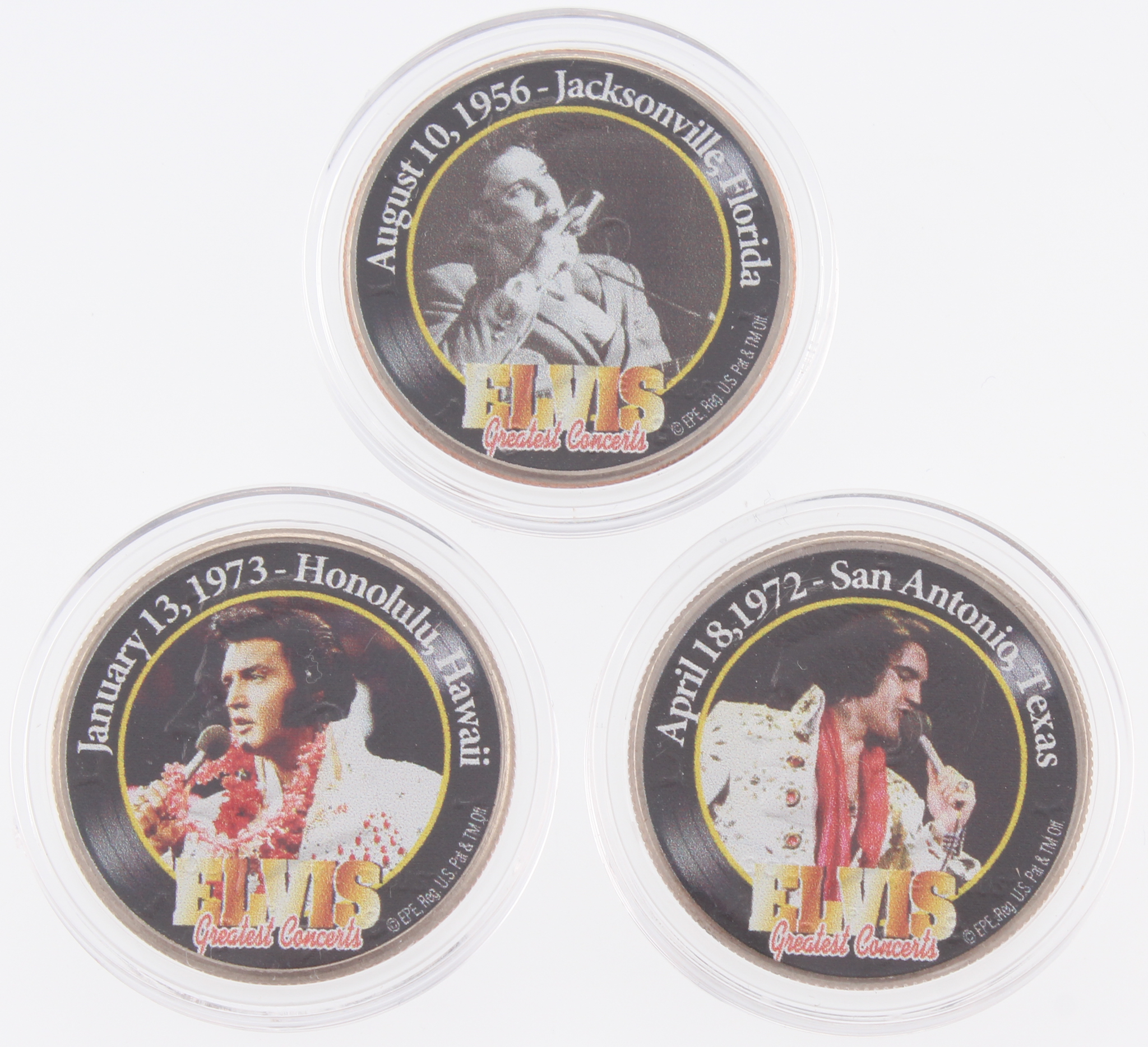 Set of (3) Elvis Presley Colorized 24K Gold Plated Colorized Quarters