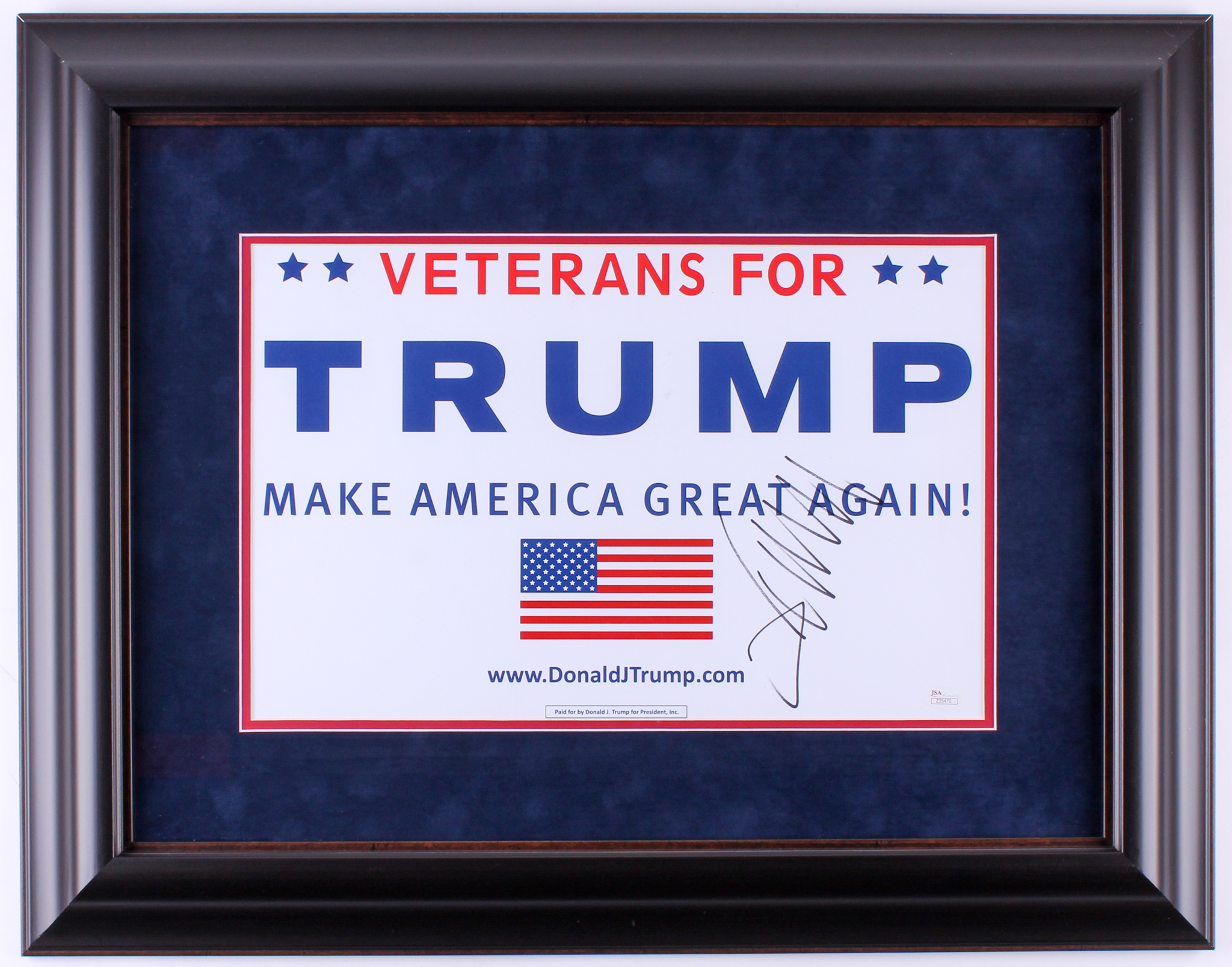 Donald Trump Signed 22x28 Custom Framed Campaign Sign (JSA LOA)