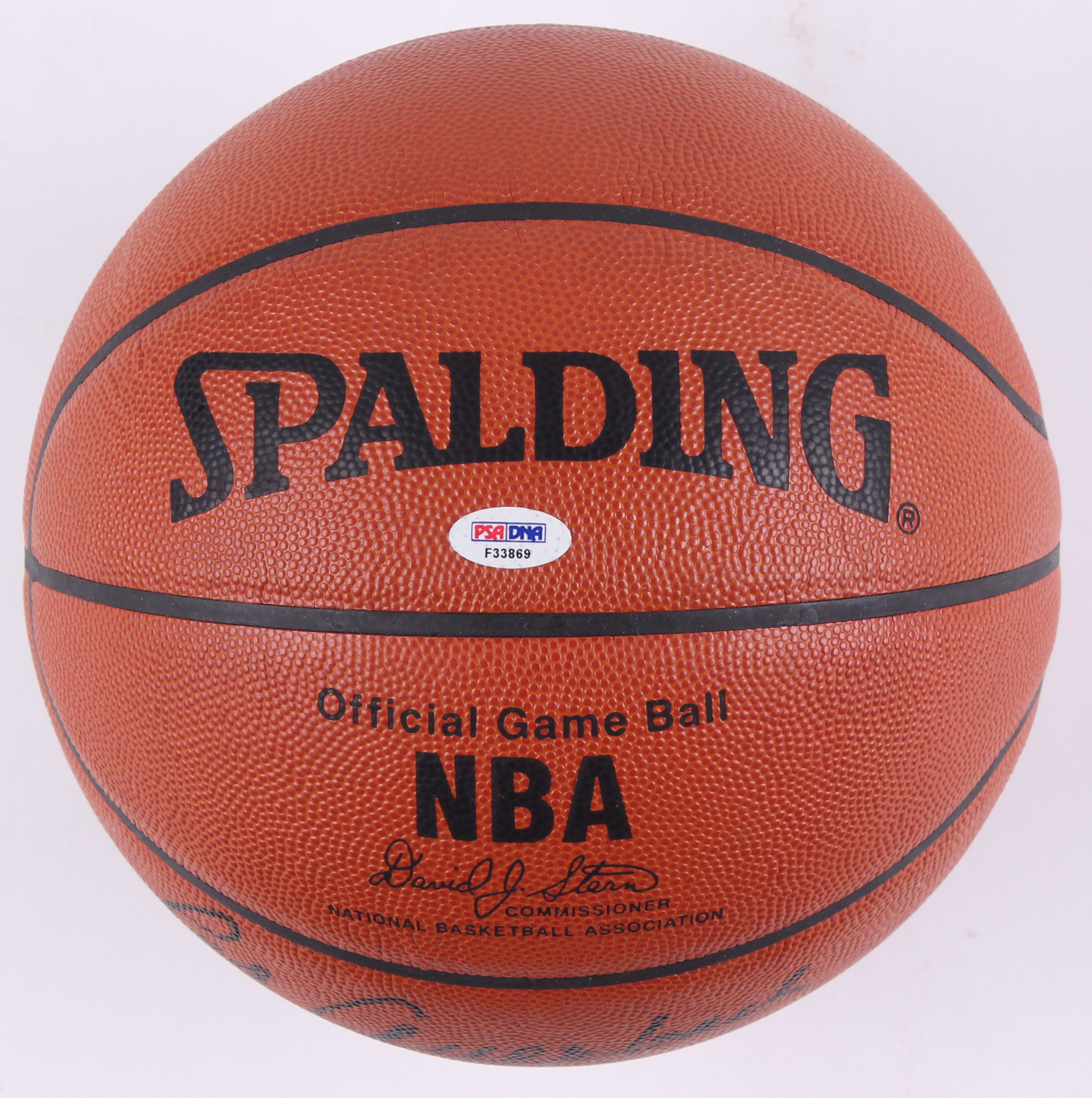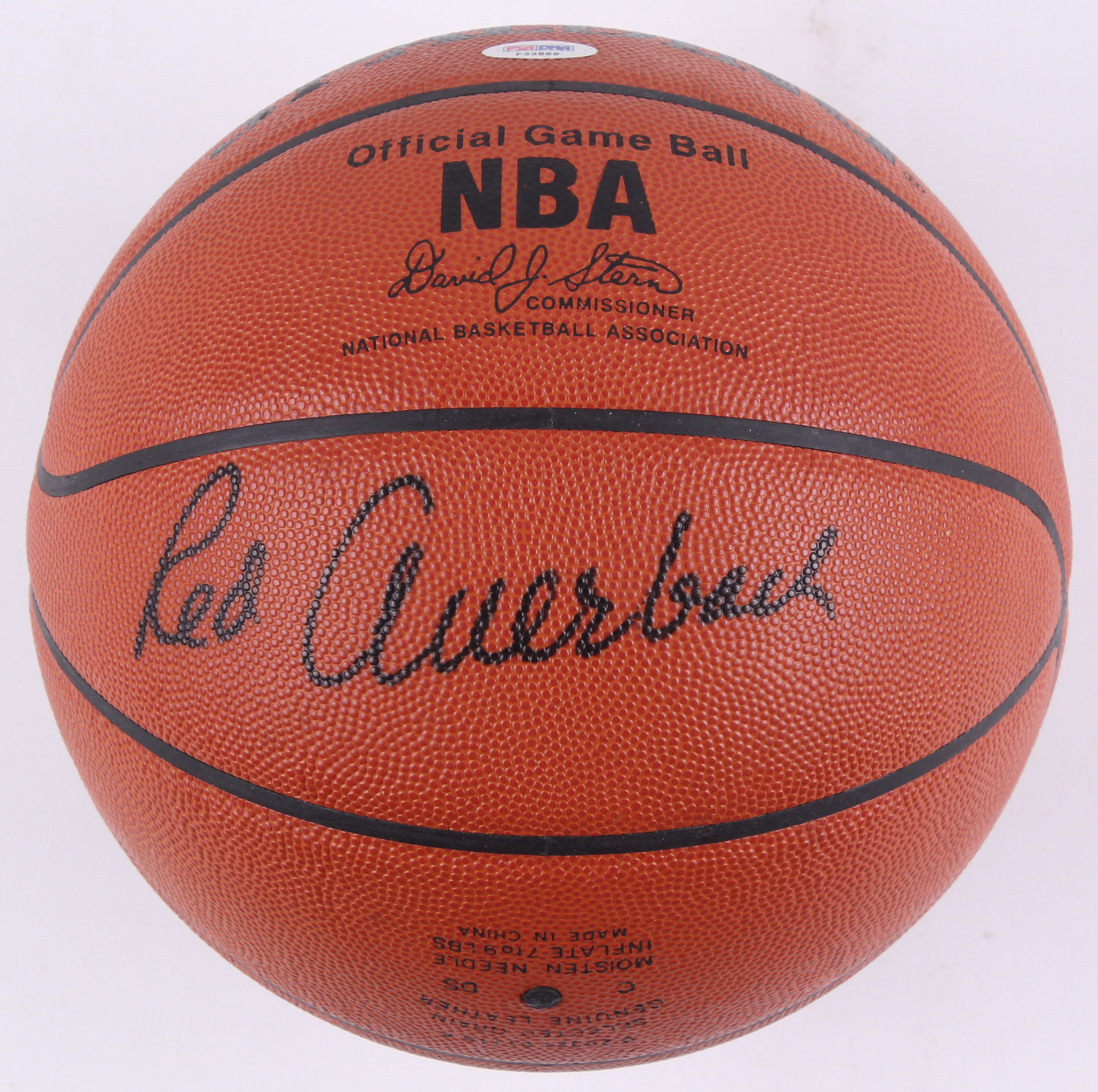 Spalding Official Game Ball NBA basketball has been hand-signed in black felt-tip pen by Red Auerbach.