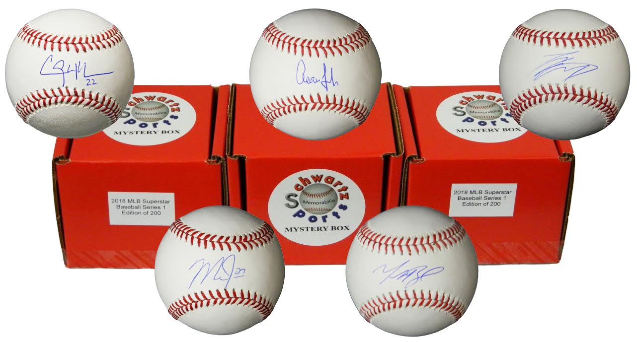 This Series 1 Schwartz Sports 2018 MLB Current Star Mystery Baseball edition is Limited to 200 individual boxes. Each Mystery Baseball is a random pre-packaged autographed Rawlings Official MLB baseball from one of over 45 current MLB stars.