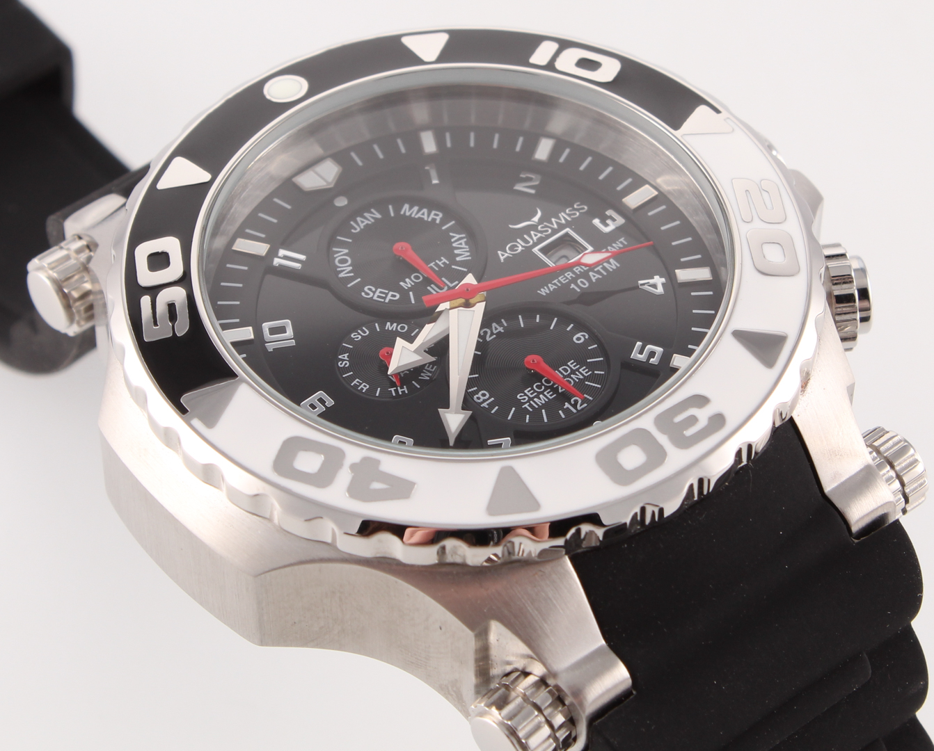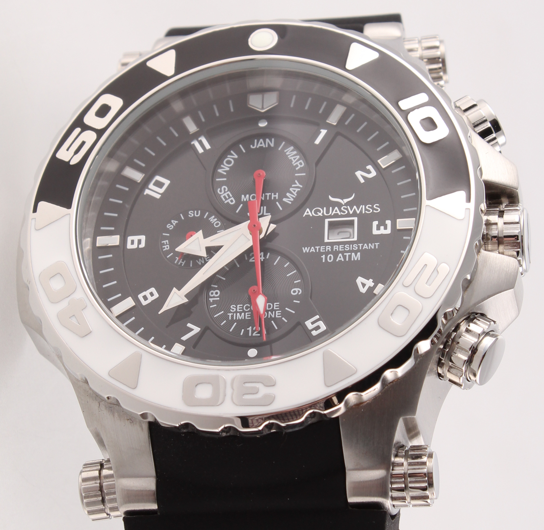 Introducing the AQUASWISS Collection, stunning watches that can be worn for sport, casual, or dress. All AQUASWISS timepieces are water resistant up to 10 ATM (330 feet). All AQUASWISS watches come with Swiss movements. This AQUASWISS watch is BRAND NEW and comes in its original box with owners manual and 2 year warranty (from Manufacturer). AQUASWISS watches are truly high-quality timepieces. (All weights, measurements, and colors are approximate and may vary slightly from the listed dimensions or as seen in the image).