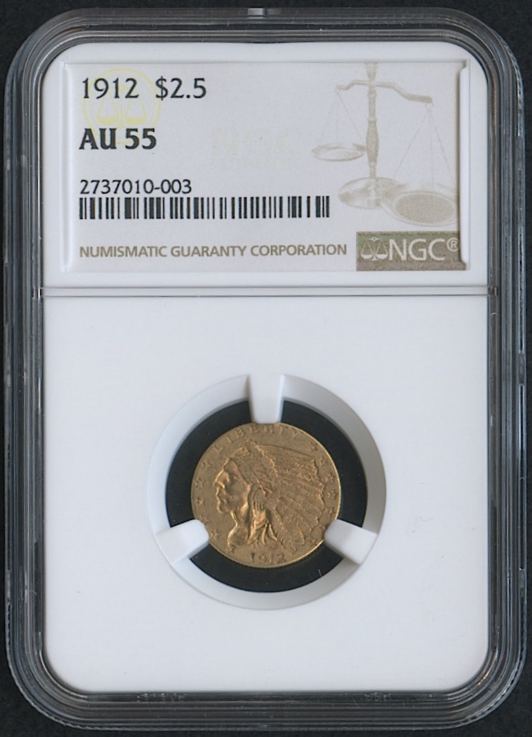 1912 $2.50 Indian Quarter Eagle Gold Coin (NGC AU 55)