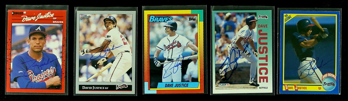 (5) Autographed David Justice Cards (2 Rookie Cards)