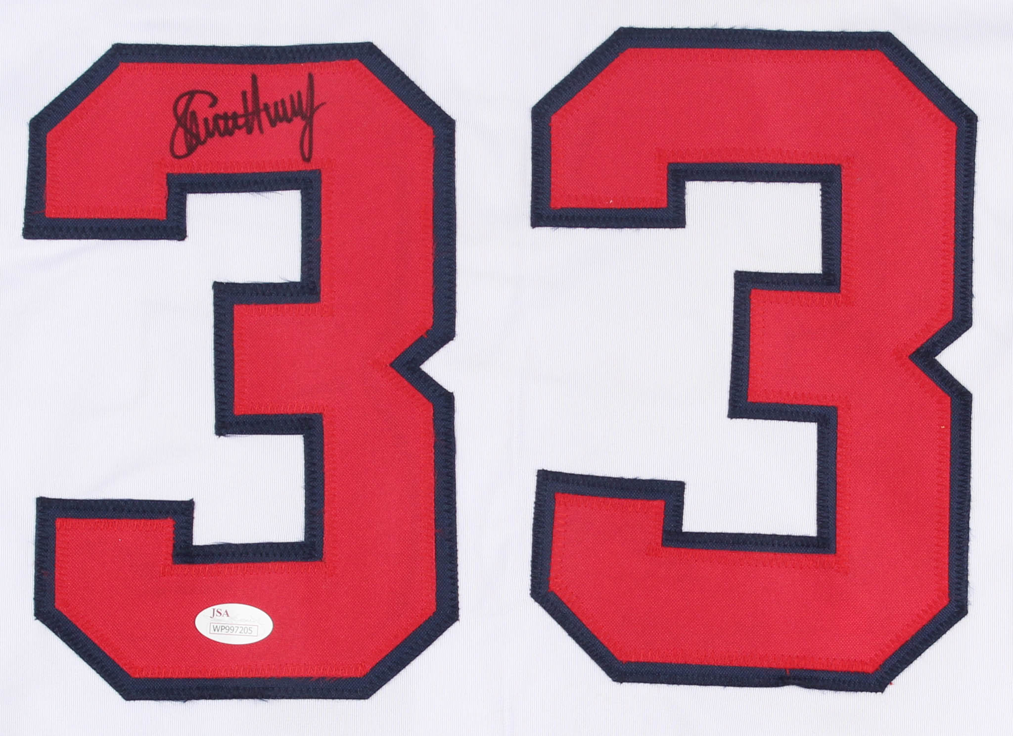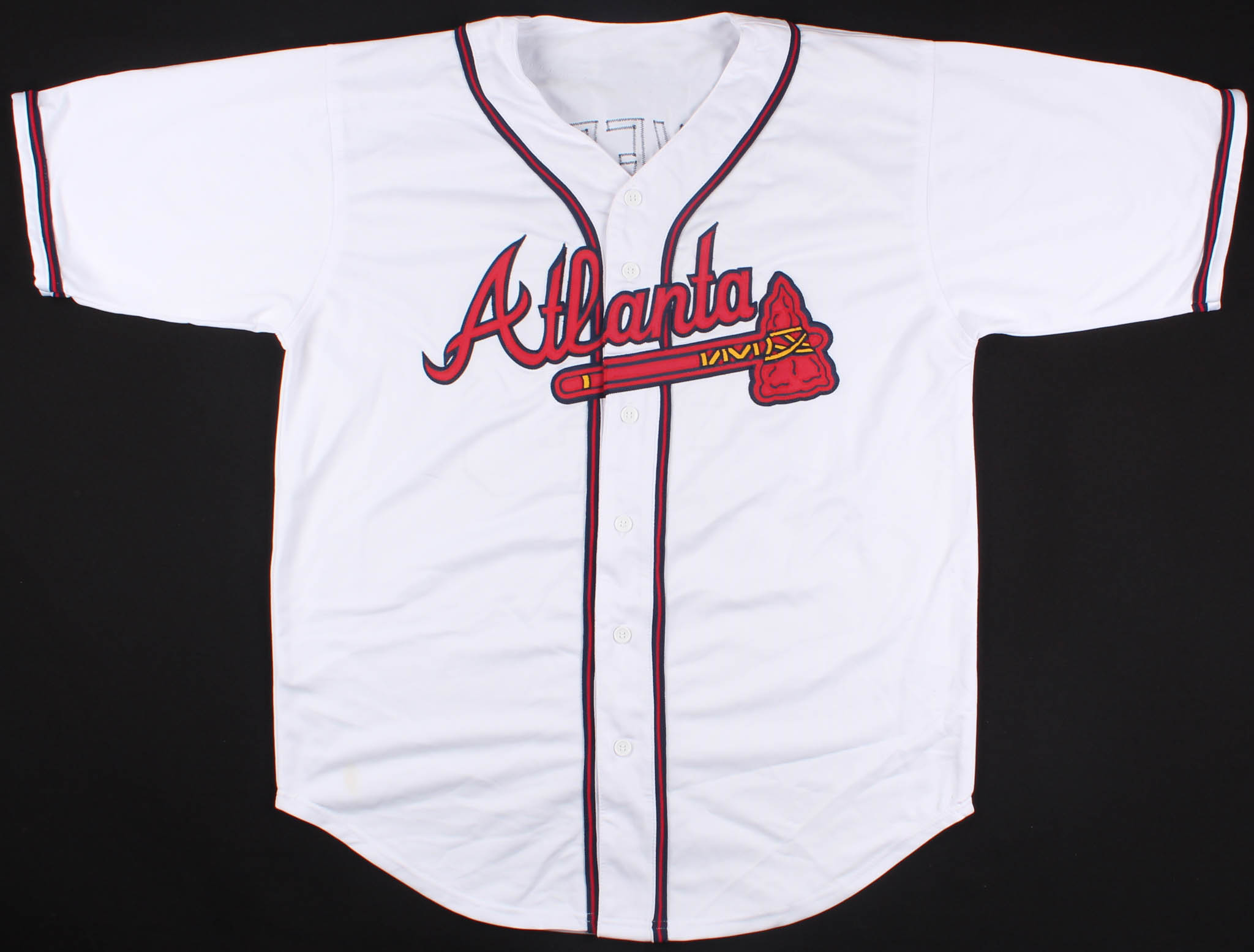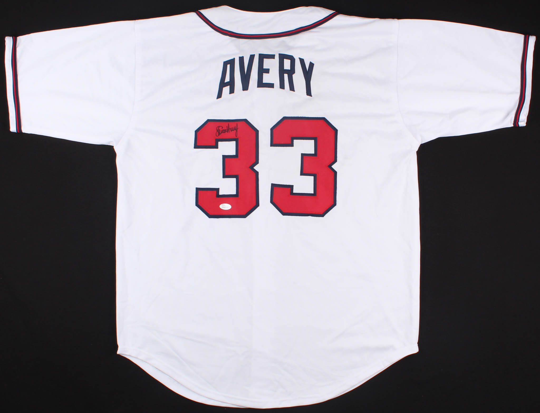 Custom on-field style jersey. Everything is sewn on, size XL. Hand-signed in black felt-tip pen by Steve Avery.