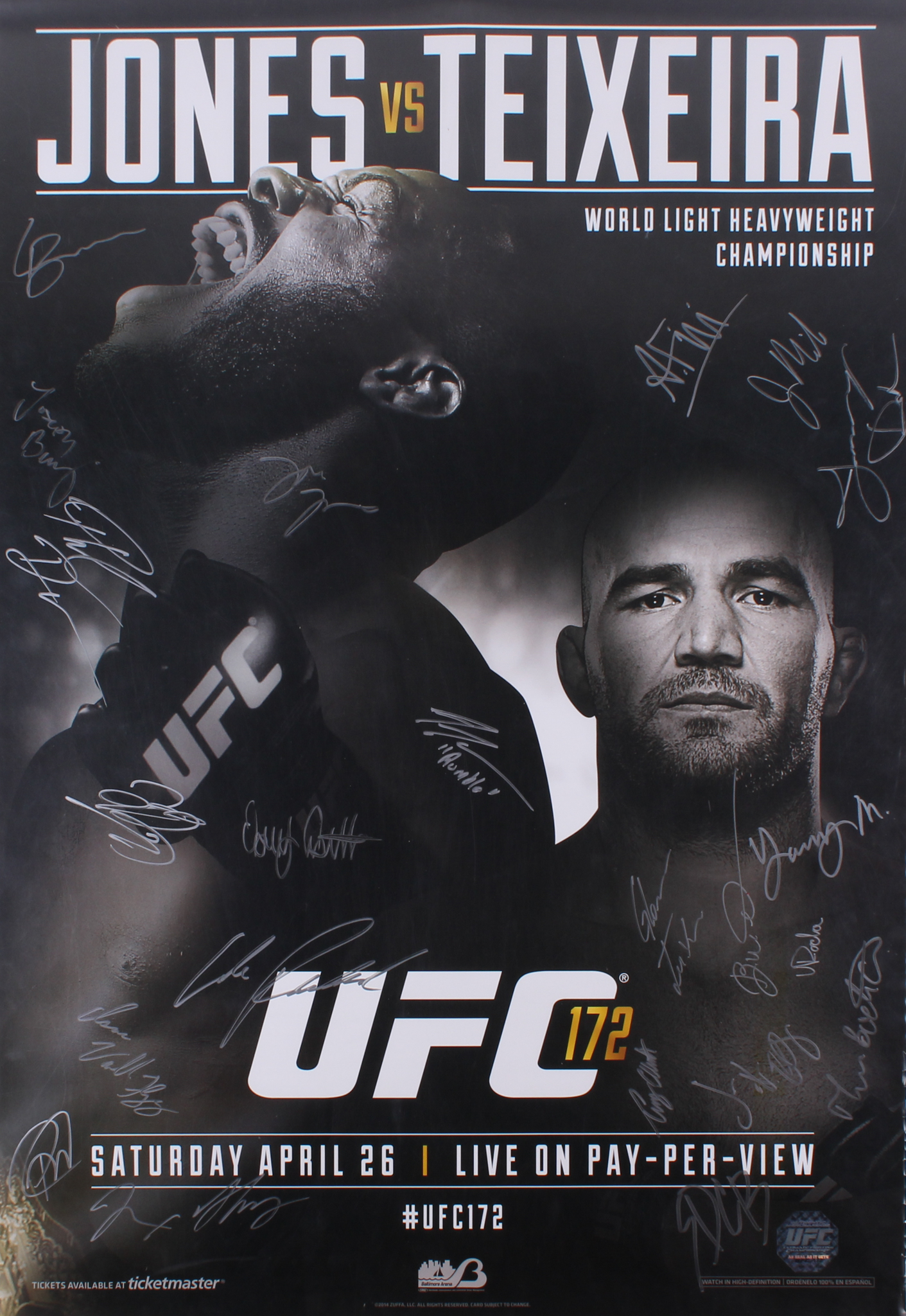 UFC 172 Jones vs. Teixeira 27x39 Poster Signed by (20) with Jon Jones, Glover Teixeira & Anthony Johnson (UFC Hologram)