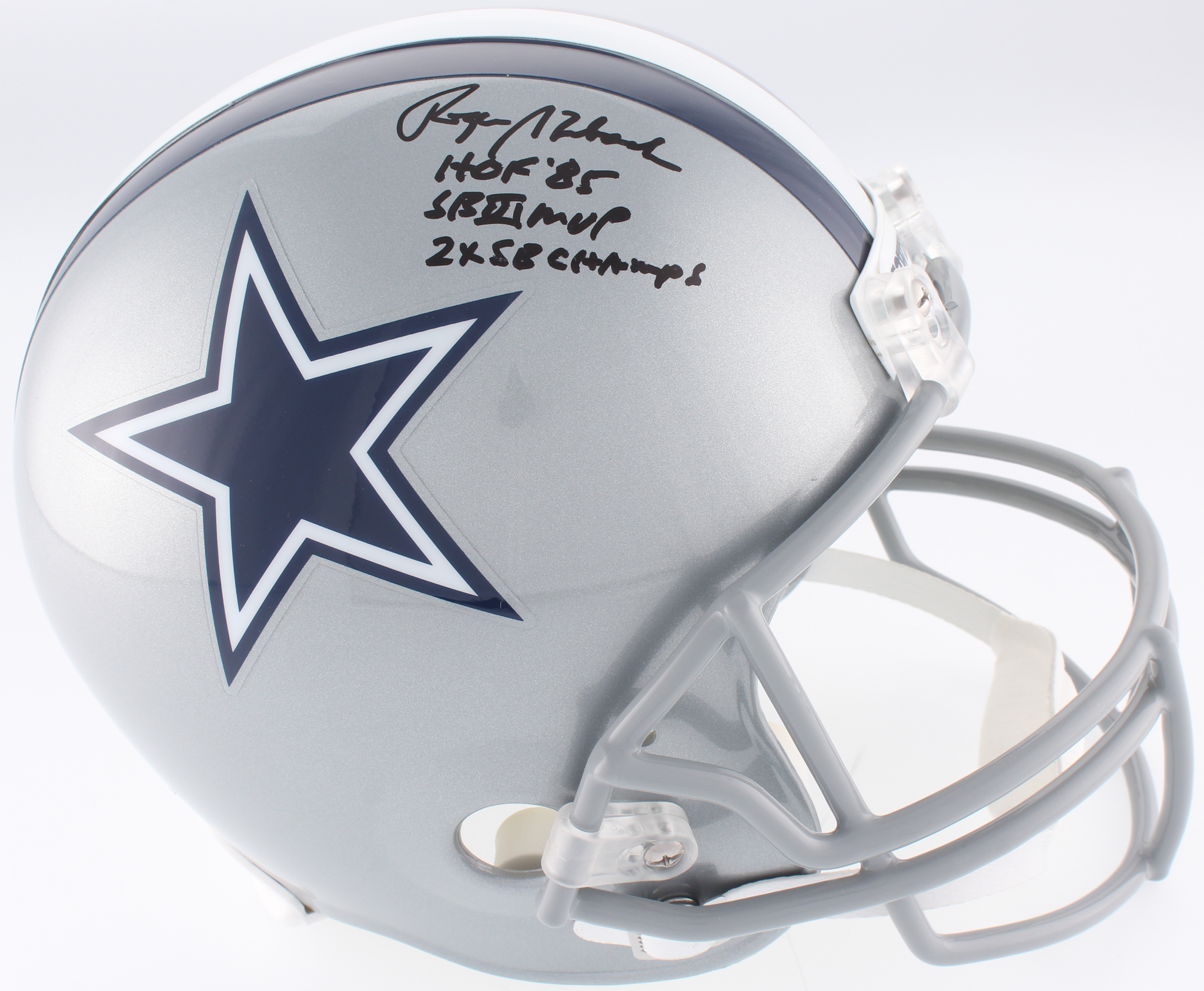 Dallas Cowboys full-size replica helmet. Hand-signed and inscribed by Roger Staubach (HOF).