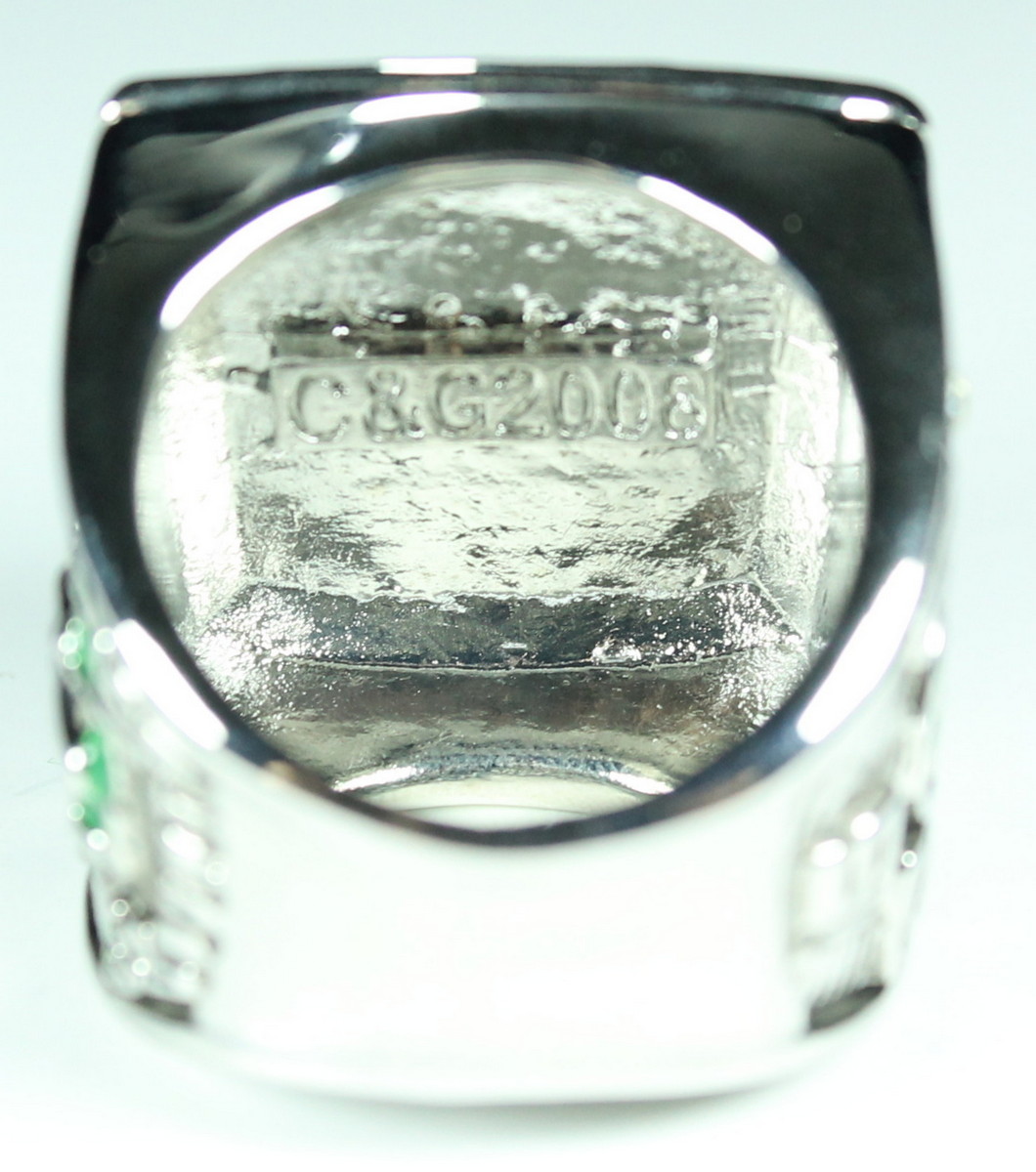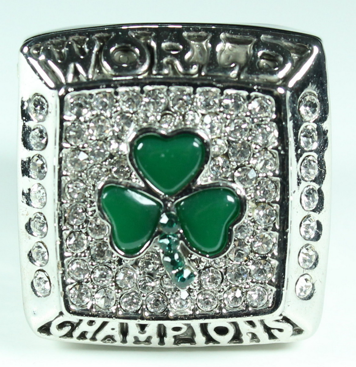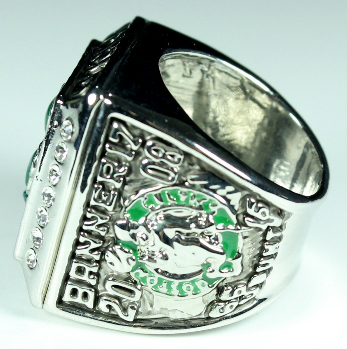 Kevin Garnett Boston Celtics High Quality Replica 2008 NBA World Champions Ring. The ring has been hand crafted by professional jewelers. Made of metal alloy and clad with Rhodium. Size 10.