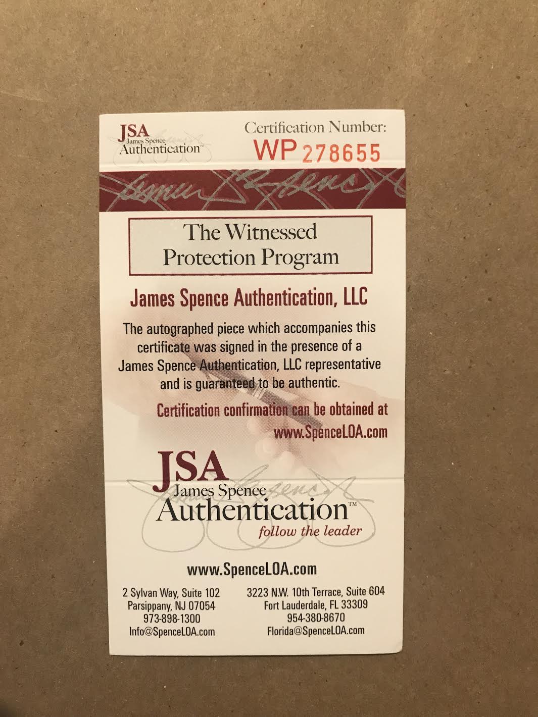 The lot / autograph(s) includes an official James Spence Authentication (JSA) hologram and matching COA for authenticity purposes. The signing of this item was witnessed by JSA.