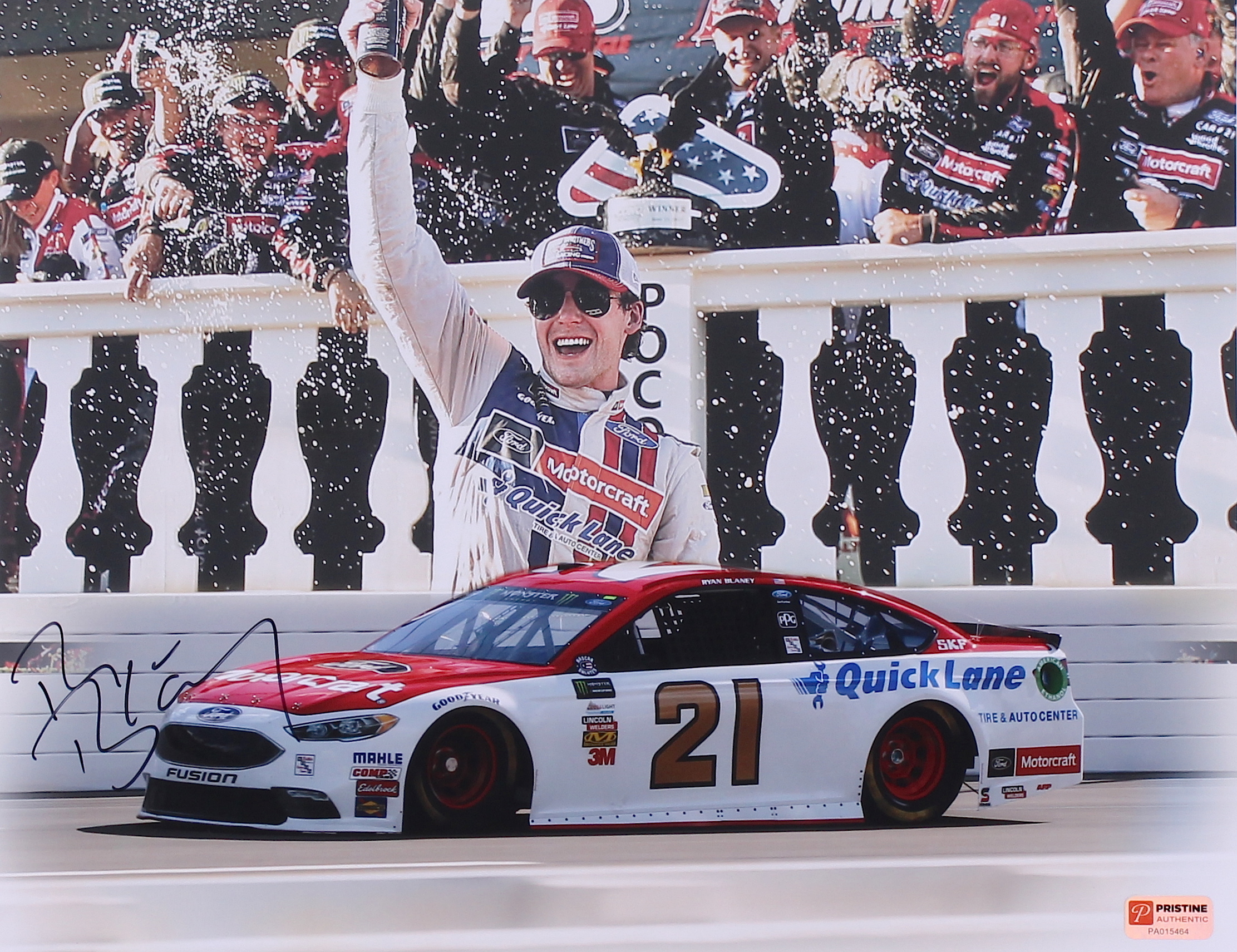 Ryan Blaney Signed 2017 Pocono Win NASCAR 11x14 Photo (PA COA)