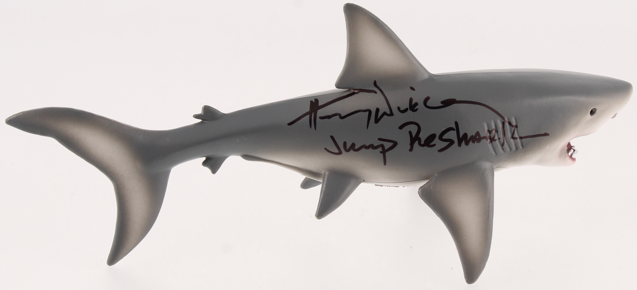 Rubber toy shark measures 7.75" in length and is hand-signed and inscribed in black felt-tip pen by Henry Winkler.