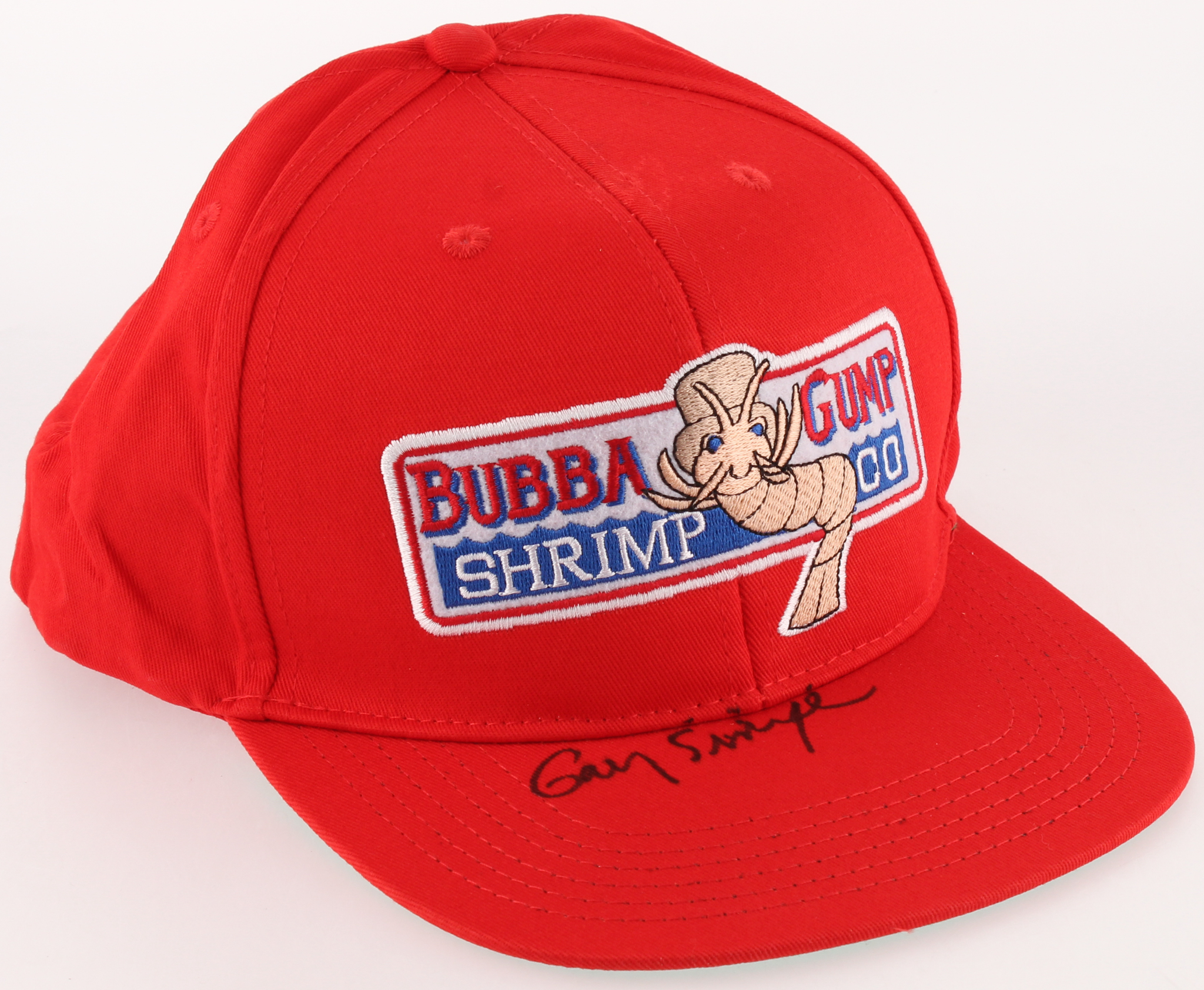 Bubba Gump Shrimp snapback hat. Hand-signed in black felt-tip pen by Gary Sinise.