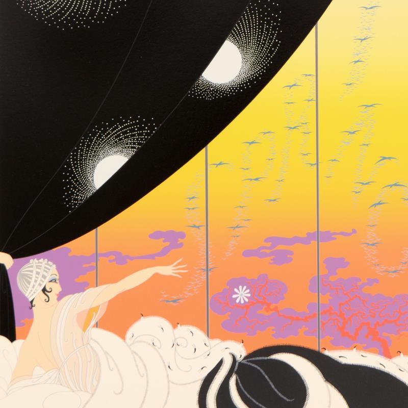 Erte disappeared somewhat from the fashion scene in the years following World War Two, only to have his glamorous career re-launched in 1967 by London art dealer Eric Estorick, who was greatly impressed by Erte’s vast body of work. Effectively taking New York and London by storm, the duo also introduced a new generation of fashionistas to Erte’s spectacular Art Deco creations. With demand for his work at an all time high, Erte found that while the wealthy happily paid top dollar for his original pieces, young people of limited means were clamoring for something they too could afford. This led to a decision to create multiples, first of graphics, and later, of bronzed sculptures. During the quarter century of Erte's "second career," he achieved a level of fame which rivaled the first, if only for its wider reaching expanses.